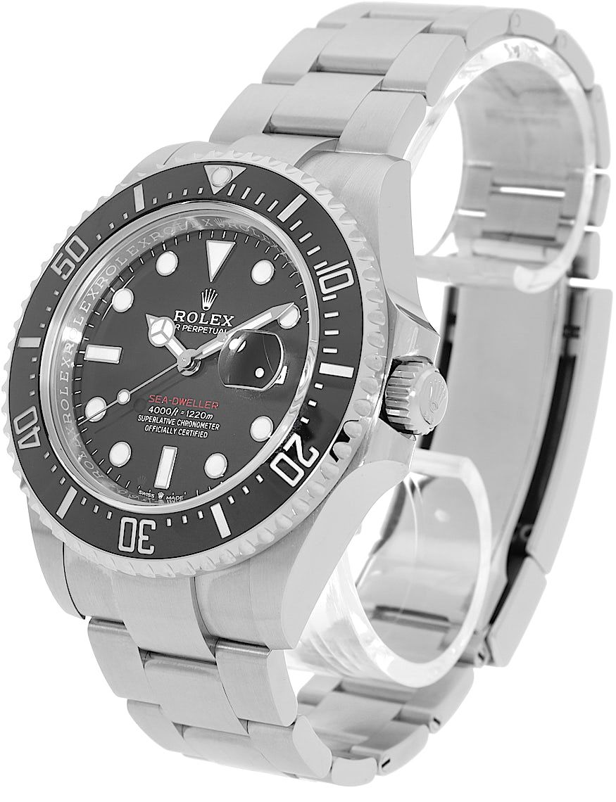 Rolex Sea-Dweller Single Red, Reference: 126600, Gender: Male, Size: 43mm, Dial color: Black, Strap material: Stainless Steel, Movement: Automatic, Year: 2024, Condition: Previously worn, minor to no signs of usage. The movement is flawless and the case has been cleaned. watch tested ensure full functionality. An inspection by our certified watchmakers guarantees its authenticity., Documents: Original papers, CHRONEXT Certificate