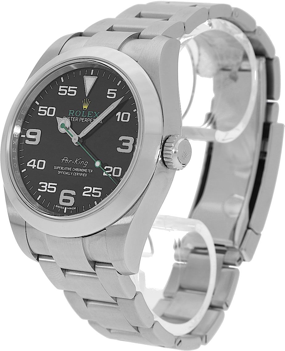 Rolex Air-King, Reference: 116900, Gender: Male, Size: 40mm, Dial color: Black, Strap material: Stainless Steel, Movement: Automatic, Year: 2018, Condition: Previously worn, minor to no signs of usage. The movement is flawless and the case has been cleaned. watch tested ensure full functionality. An inspection by our certified watchmakers guarantees its authenticity., Documents: Original papers, CHRONEXT Certificate