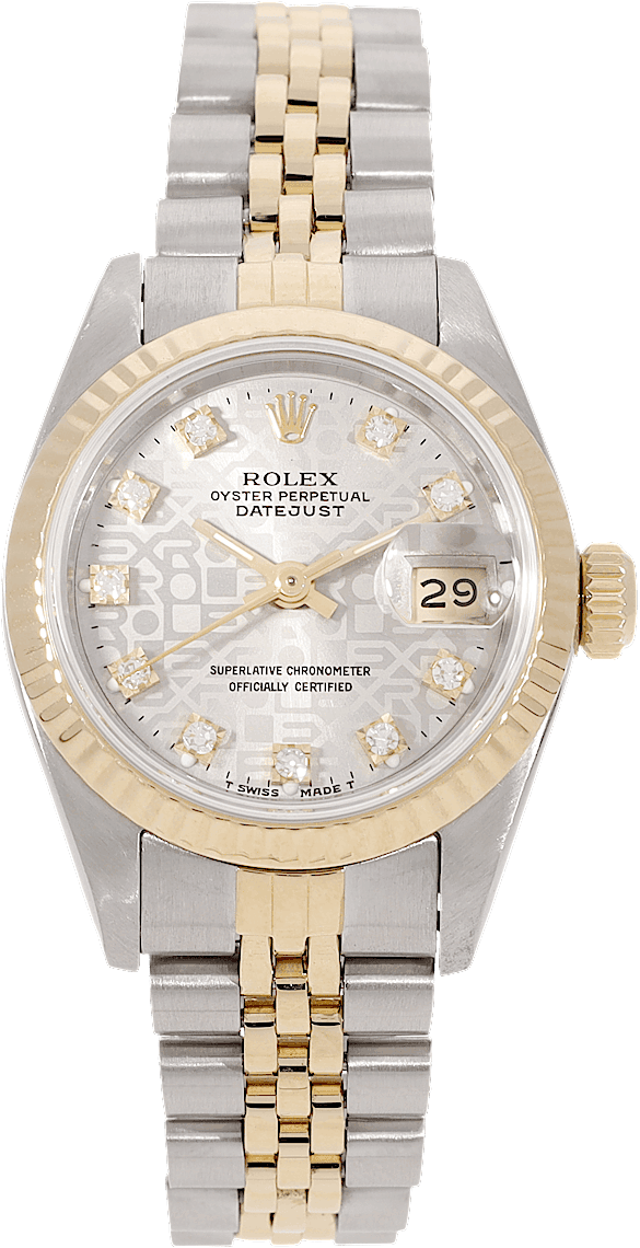 Rolex Datejust 26, Reference: 69173, Gender: Female, Size: 31mm, Dial color: Grey, Strap material: Stainless Steel Yellow Gold, Movement: Automatic, Year: 1997, Condition: Previously worn with some signs of usage. The movement is flawless and the case has been cleaned. watch tested to ensure full functionality. An inspection by our certified watchmakers guarantees its authenticity., Documents: Original papers, CHRONEXT Certificate