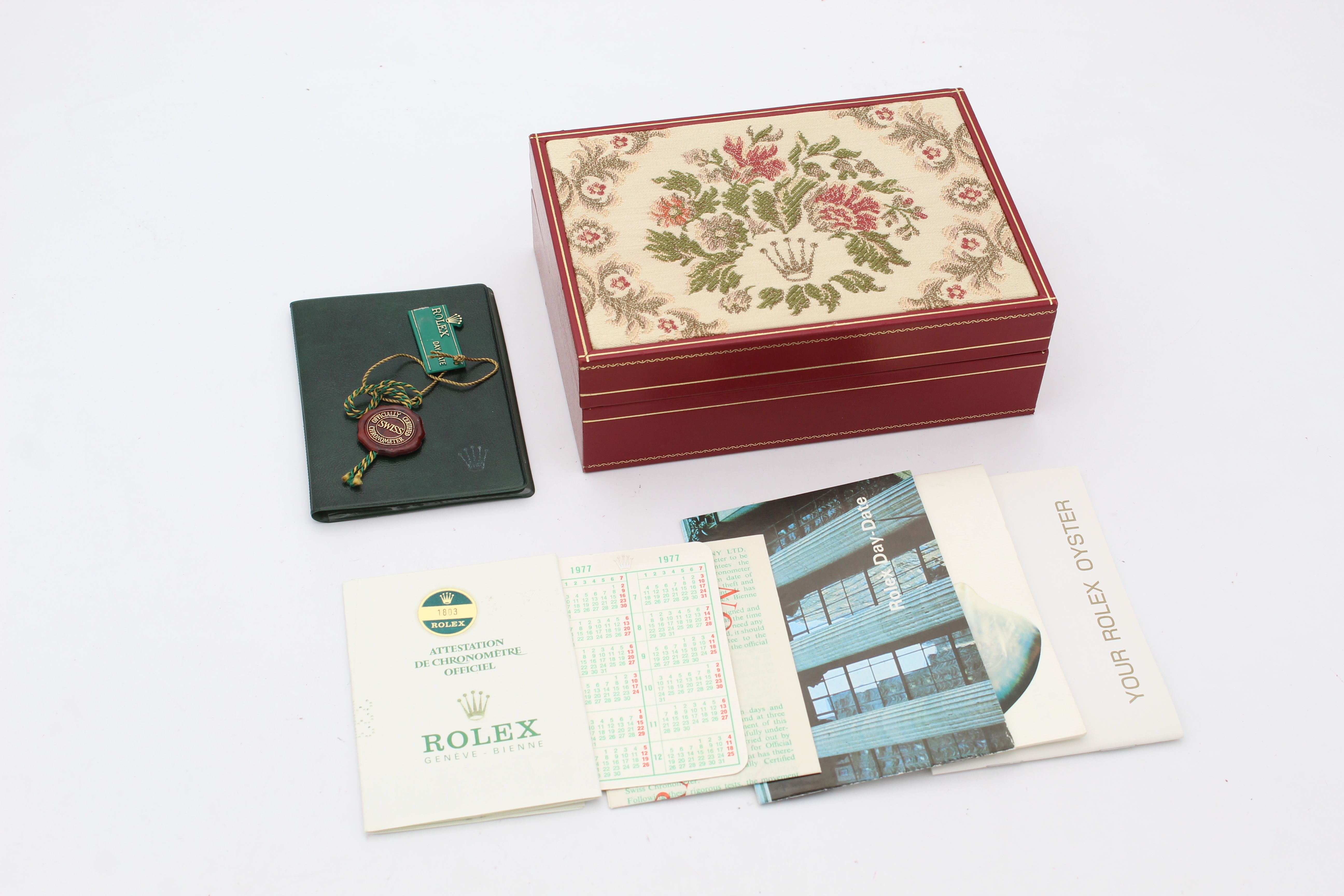 Accesorios: Caja original de Rolex (falta el cojín), folletos y documentos como se muestra