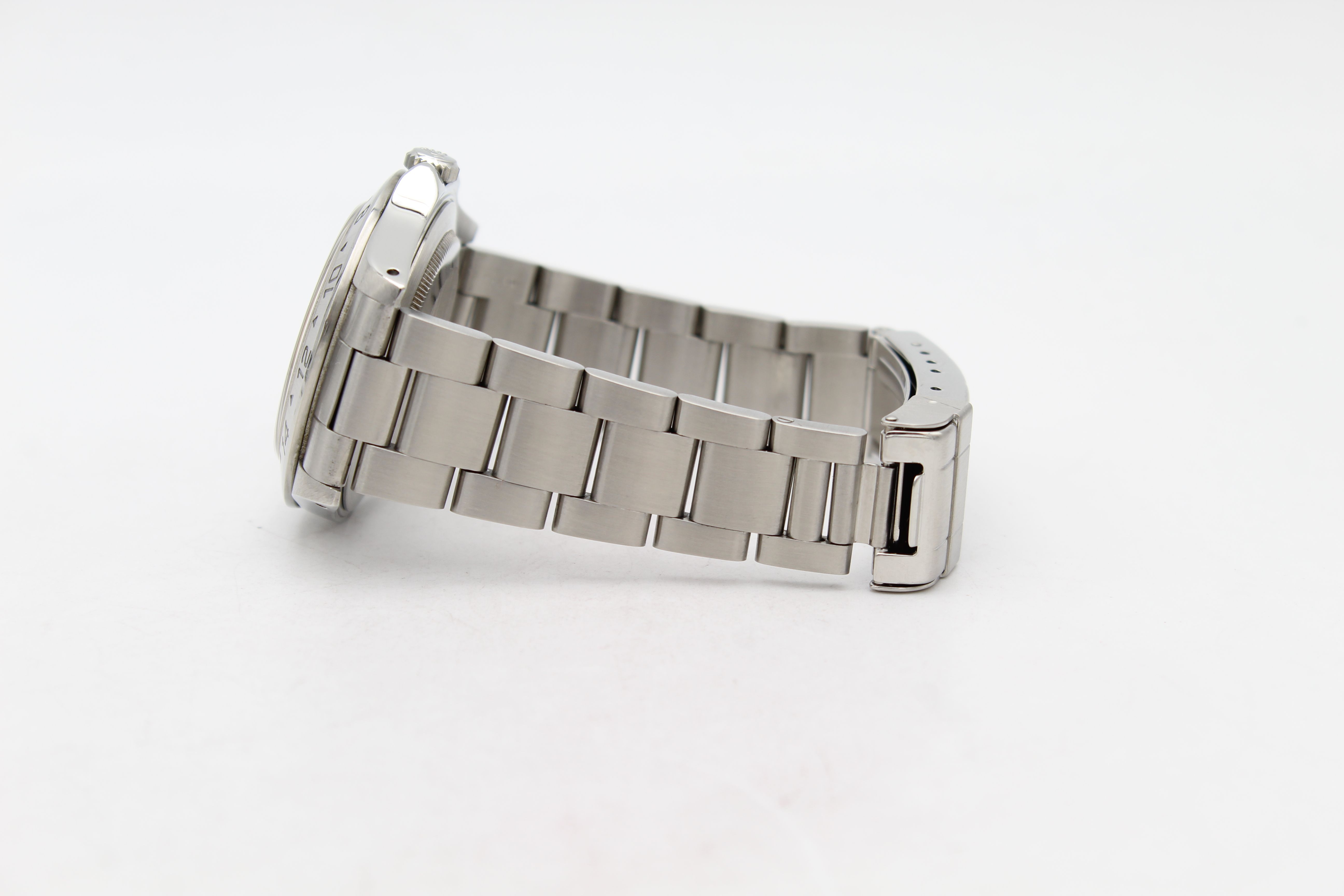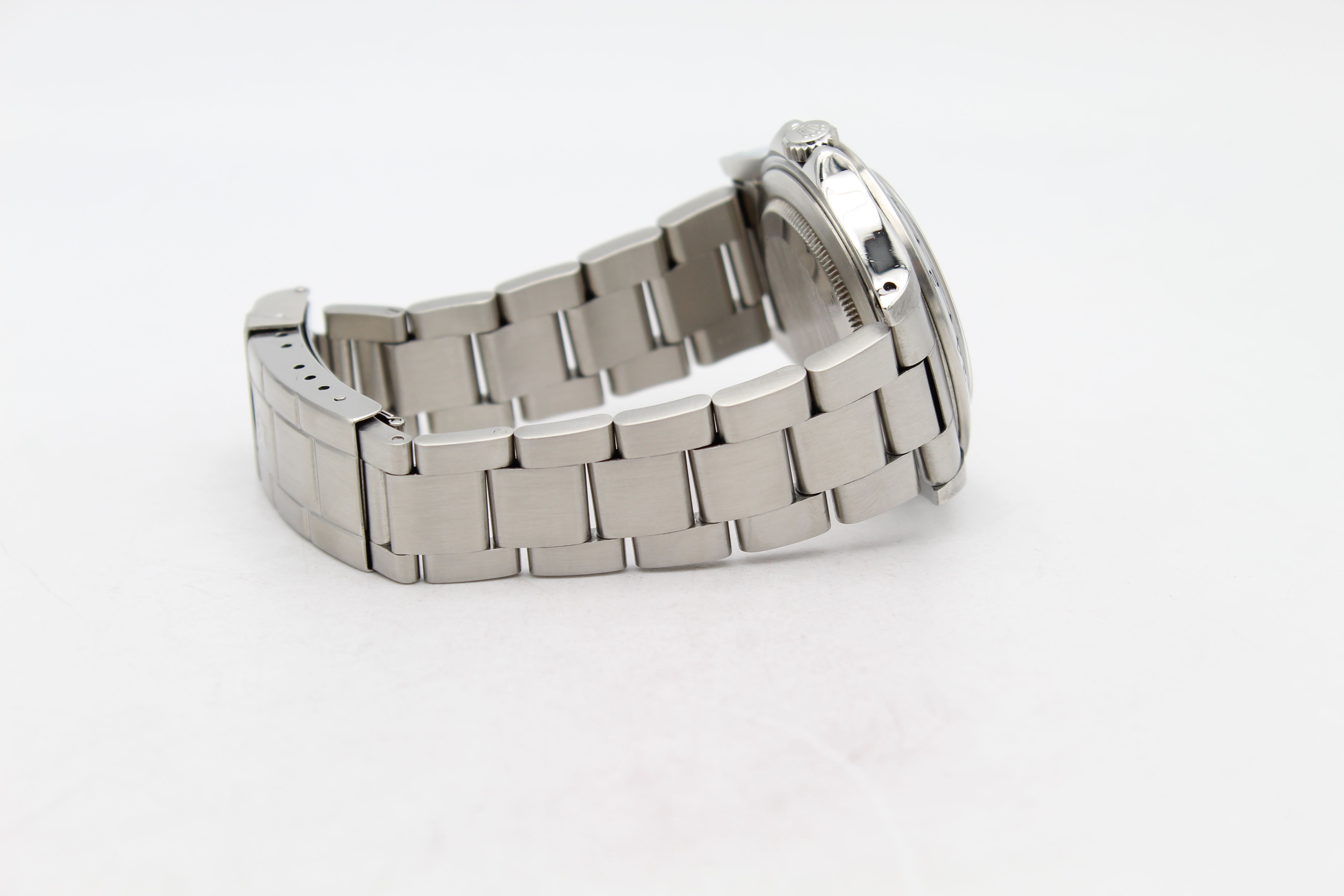 - Signos leves de uso como microarañazos o pequeños arañazos superficiales. La caja, el bisel y el brazalete conservan sus aristas definidas y su forma general. Puede haber sido pulido profesionalmente sin afectar a las líneas originales. Totalmente funcional mecánicamente.