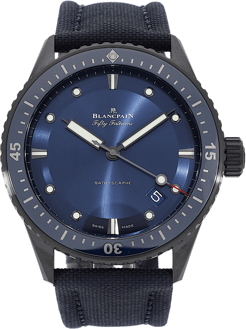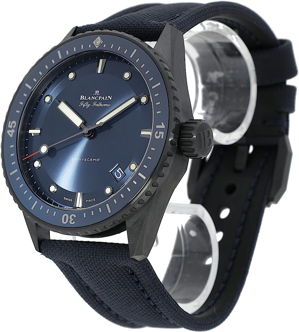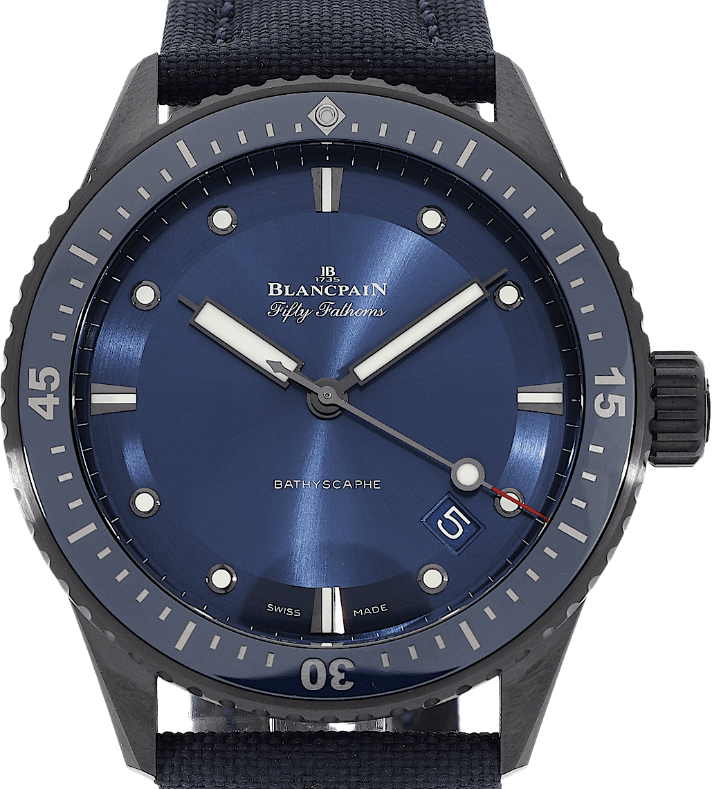 Blancpain Fifty Fathoms "Bucherer", Reference: 5100-0140, Gender: Male, Size: 44mm, Dial color: Blue, Strap material: Rubber Textile, Movement: Automatic, Year: 2021, Condition: Previously worn, minor to no signs of usage. The movement is flawless and the case has been cleaned. watch tested ensure full functionality. An inspection by our certified watchmakers guarantees its authenticity., Documents: Original papers, CHRONEXT Certificate
