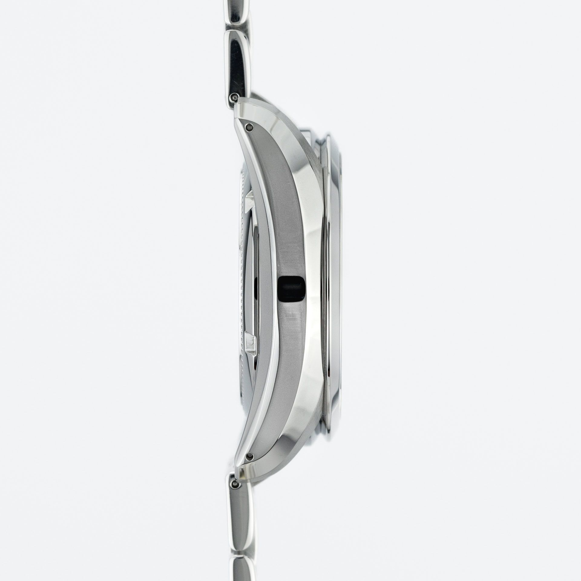 - Signos leves de uso como microarañazos o pequeños arañazos superficiales. La caja, el bisel y el brazalete conservan sus aristas definidas y su forma general. Puede haber sido pulido profesionalmente sin afectar a las líneas originales. Totalmente funcional mecánicamente.