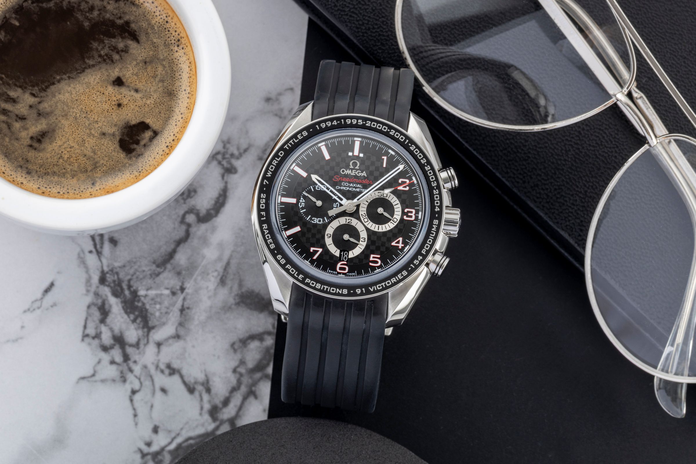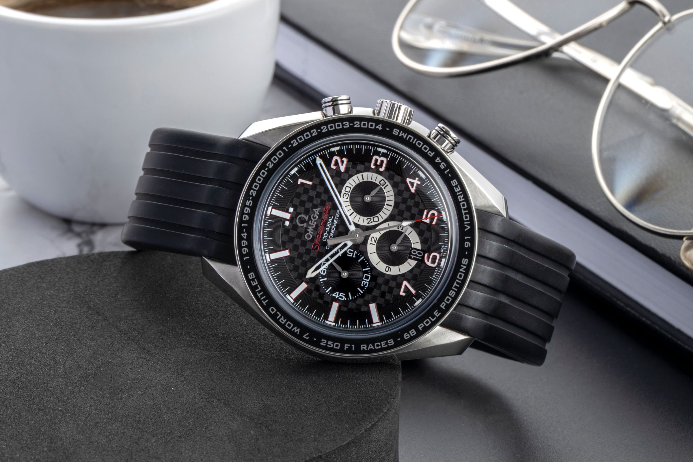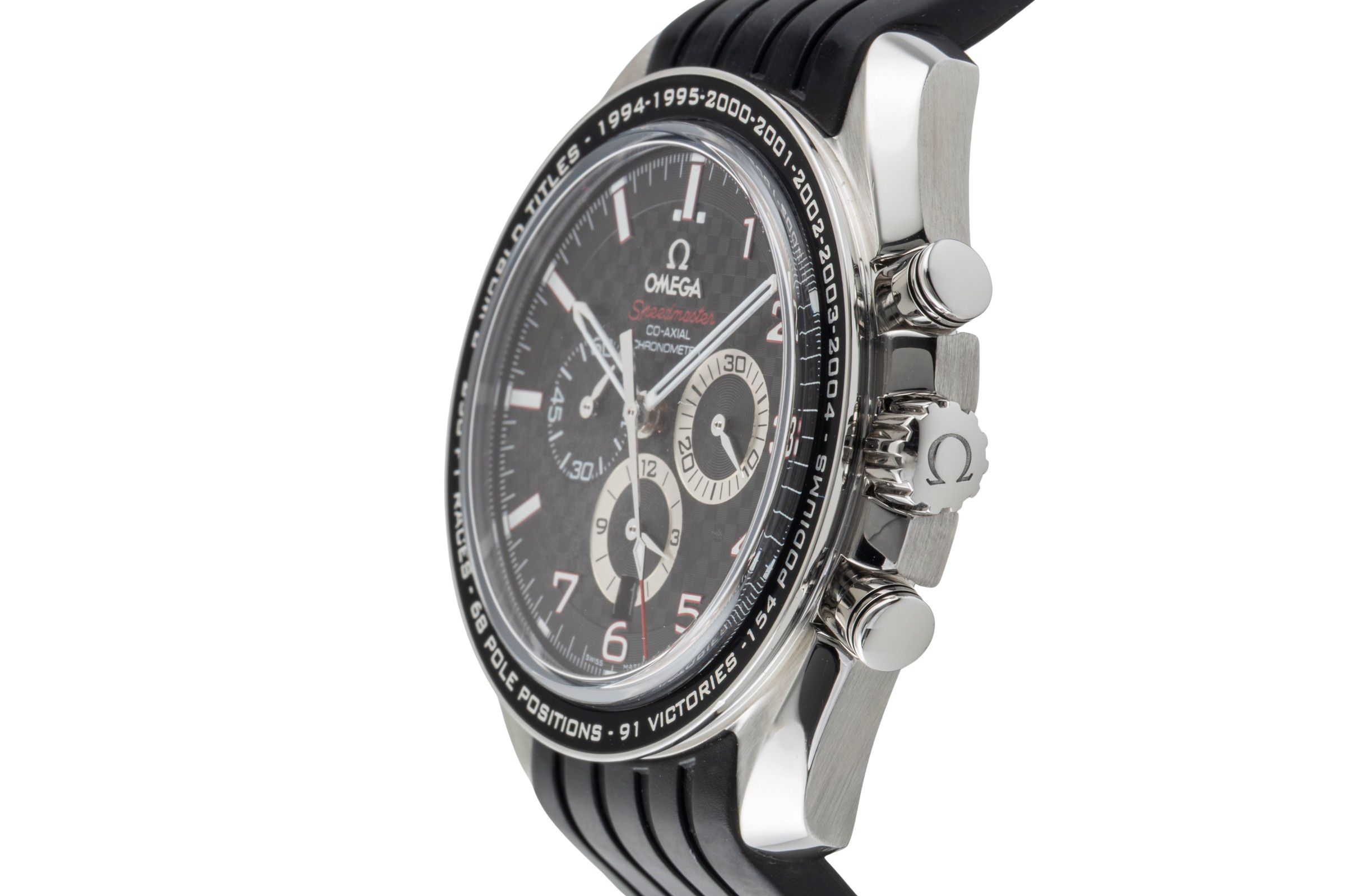 Alternative title: Omega 321.32.44.50.01.001 Speedmaster Co-Axial 44.25 Stainless Steel / Carbon / Rubber / Schumacher the Legend; Omega Speedmaster Broad Arrow Chronograph Stahl Automatik Ref. 321.32.44.50.01.001 [2600628]