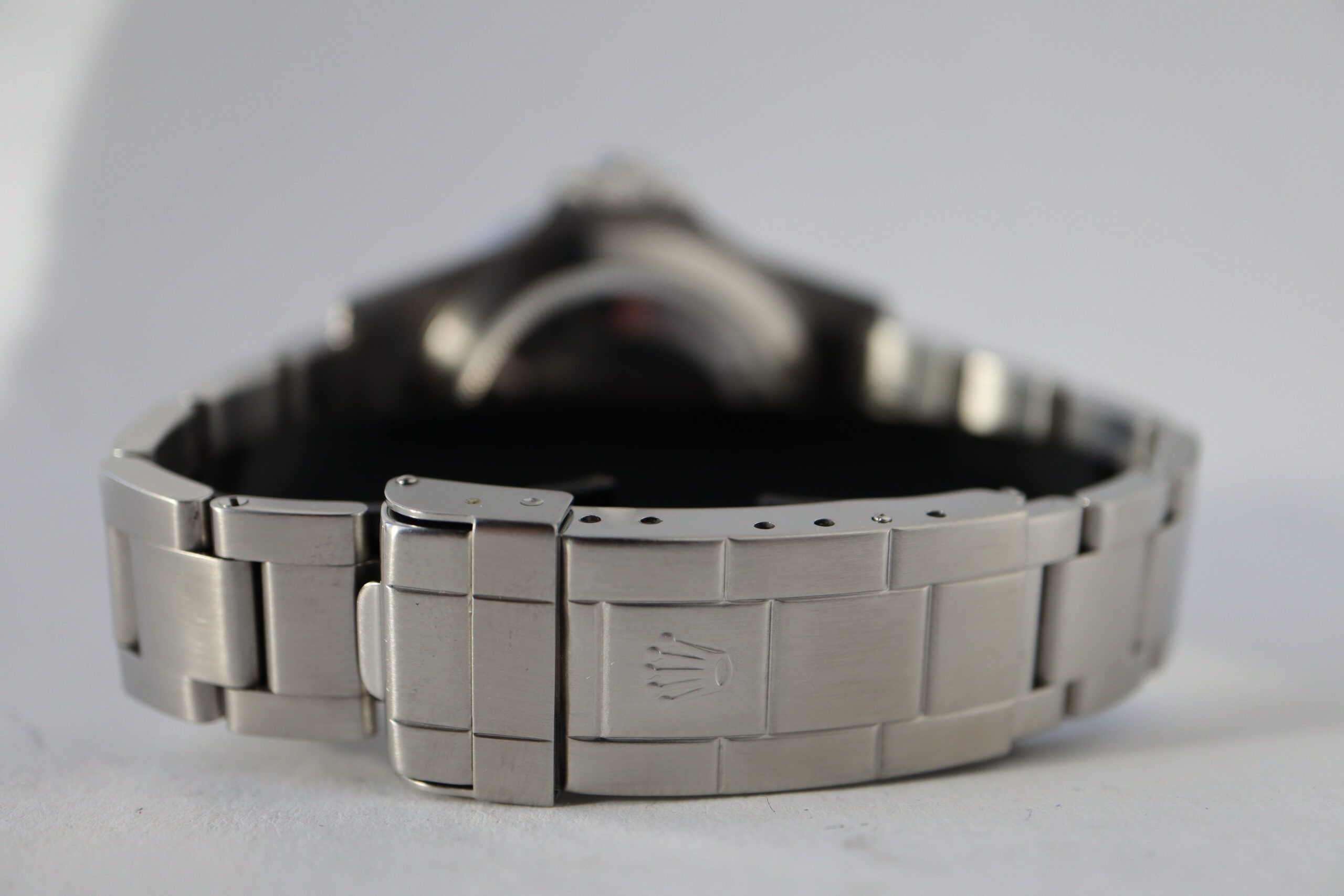 - Signos leves de uso como microarañazos o pequeños arañazos superficiales. La caja, el bisel y el brazalete conservan sus aristas definidas y su forma general. Puede haber sido pulido profesionalmente sin afectar a las líneas originales. Totalmente funcional mecánicamente.