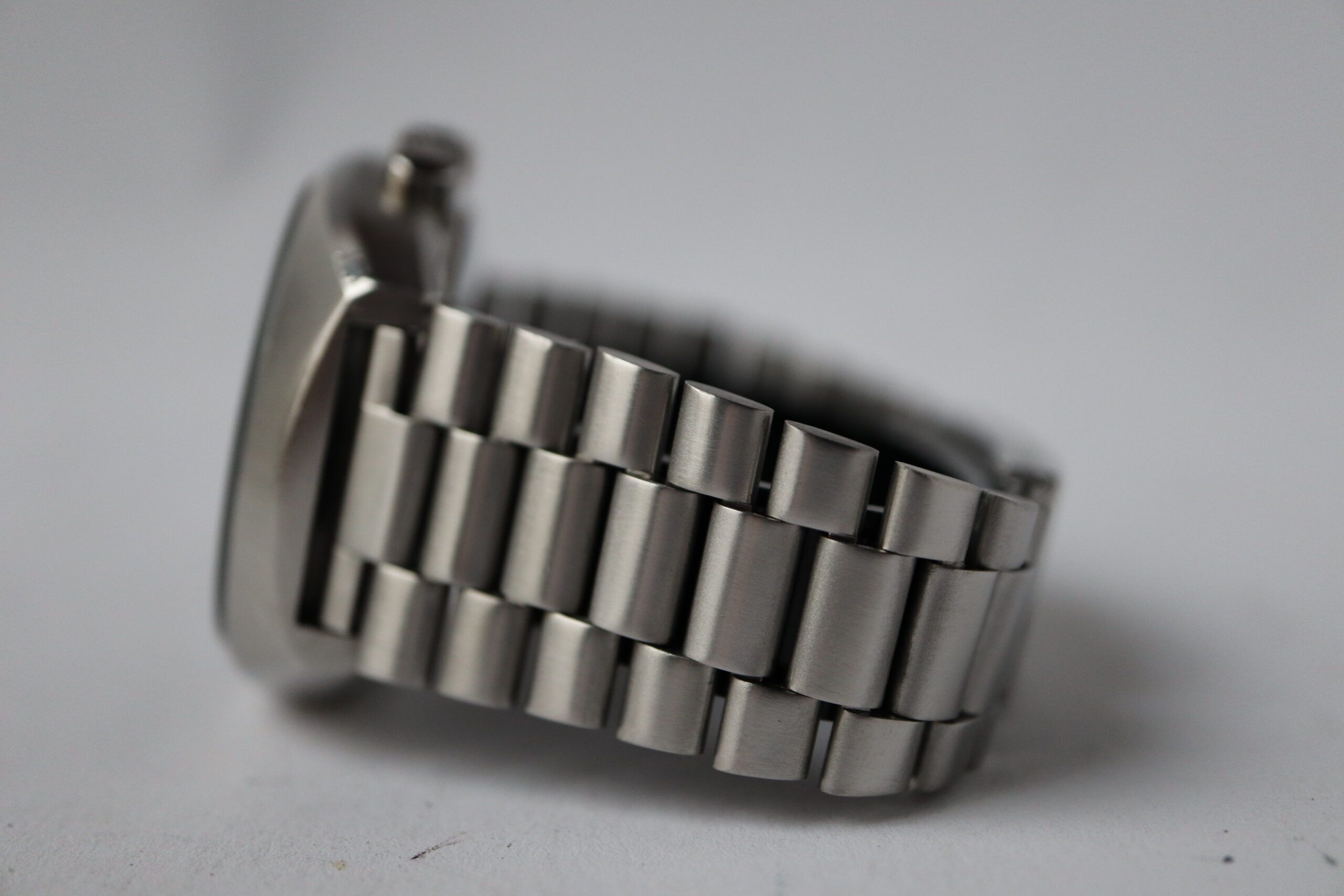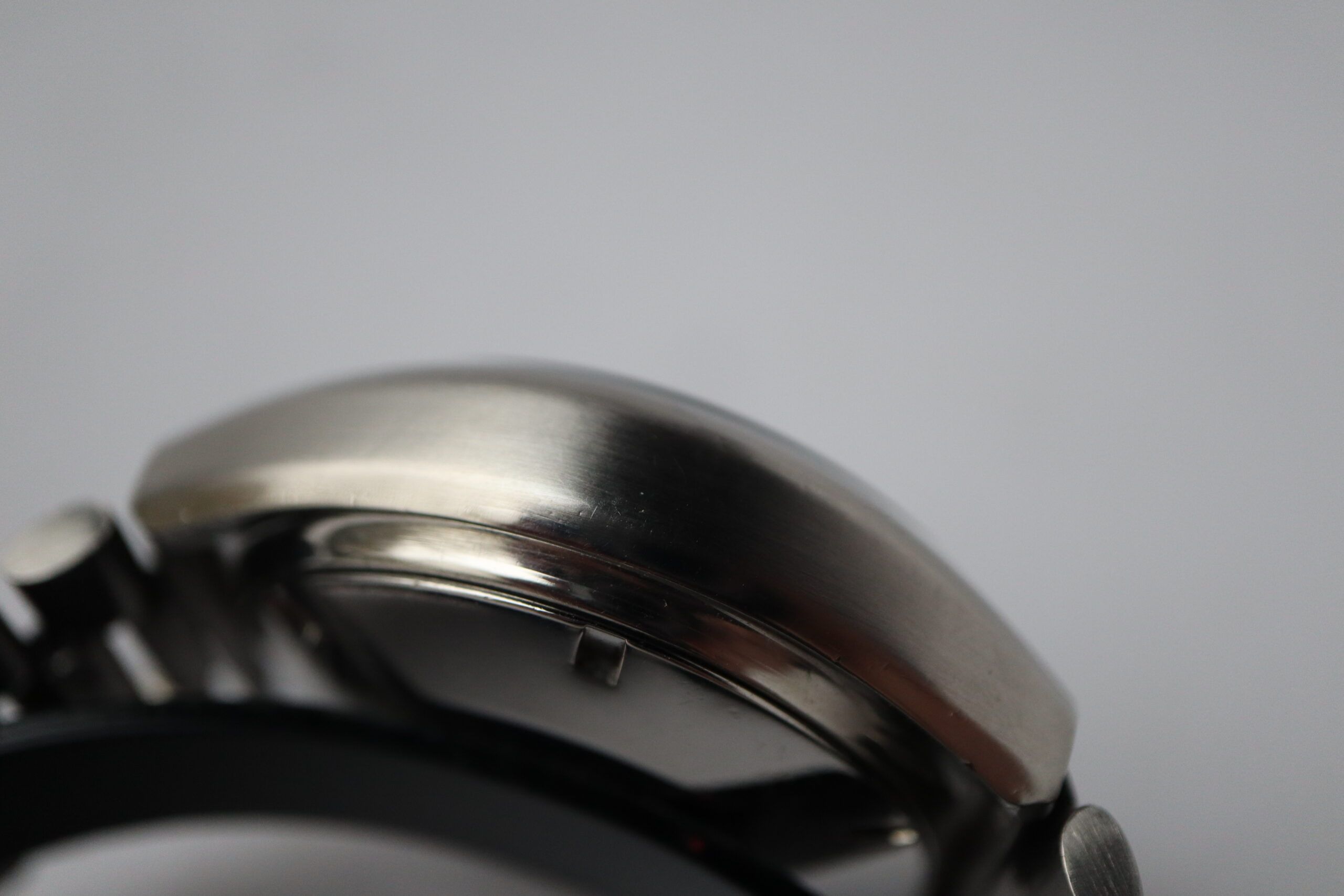 - Signos leves de uso como microarañazos o pequeños arañazos superficiales. La caja, el bisel y el brazalete conservan sus aristas definidas y su forma general. Puede haber sido pulido profesionalmente sin afectar a las líneas originales. Totalmente funcional mecánicamente.