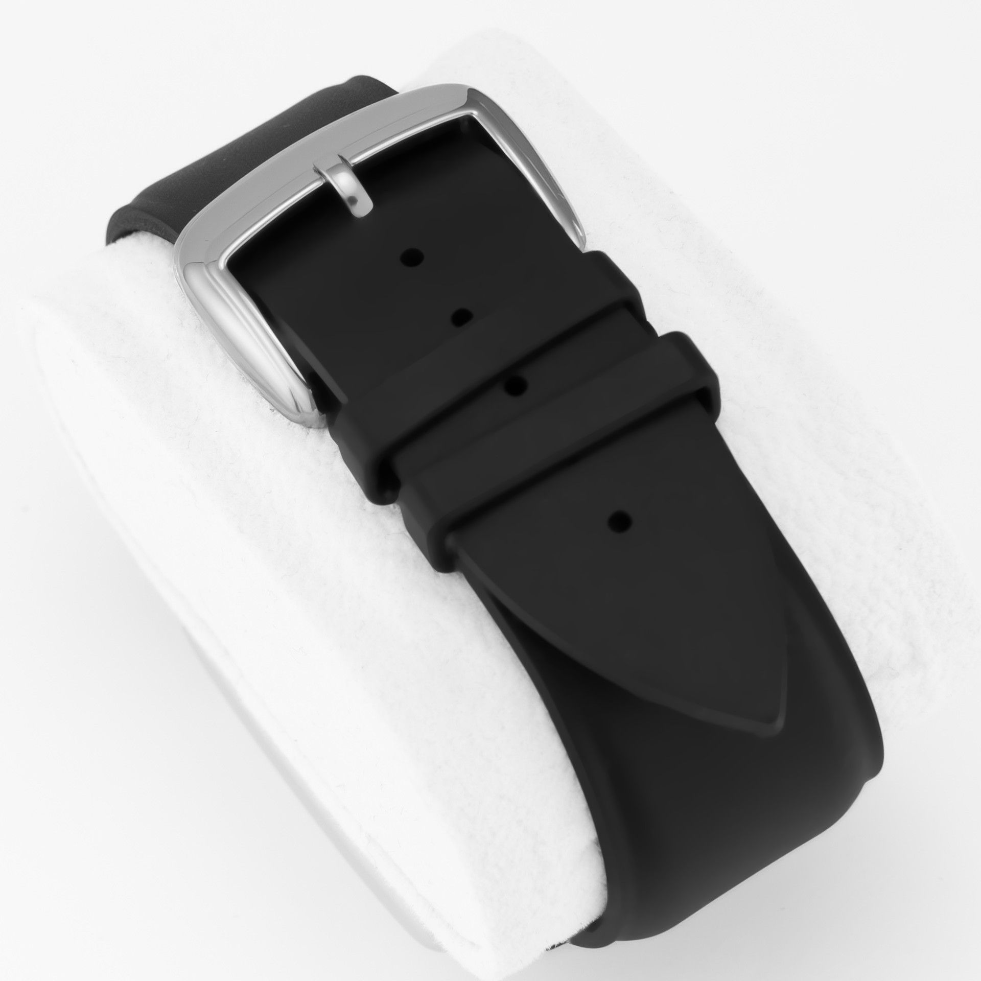 This timepiece undoubtedly belongs to the exclusive, highest-class segment. It features a stainless steel "tonneau" shaped case with dimensions of 41 mm in width excluding the crown and a mere 11 mm in thickness. The 41 mm size should not be misleading, as diagonally the case exceeds 58 mm – the watch is truly impressive. The classic black dial has large luminous Arabic numerals, luminescent hour and minute hands, as well as a central seconds hand made of polished steel with a red tip.