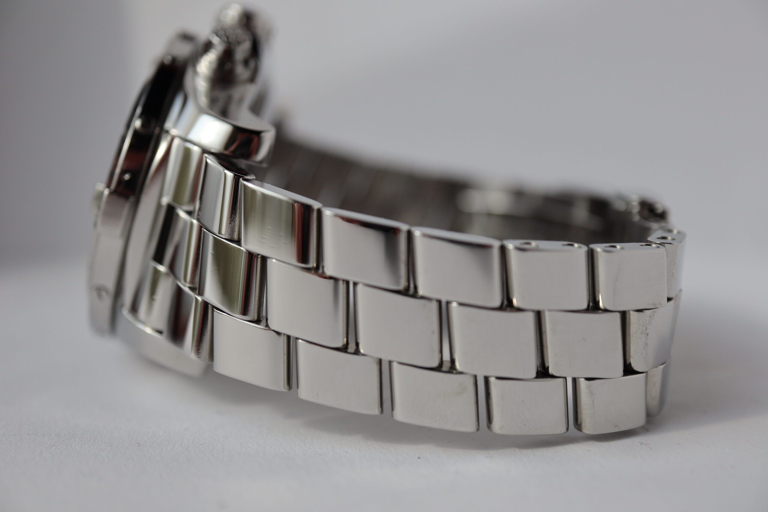 - Signos leves de uso como microarañazos o pequeños arañazos superficiales. La caja, el bisel y el brazalete conservan sus aristas definidas y su forma general. Puede haber sido pulido profesionalmente sin afectar a las líneas originales. Totalmente funcional mecánicamente.