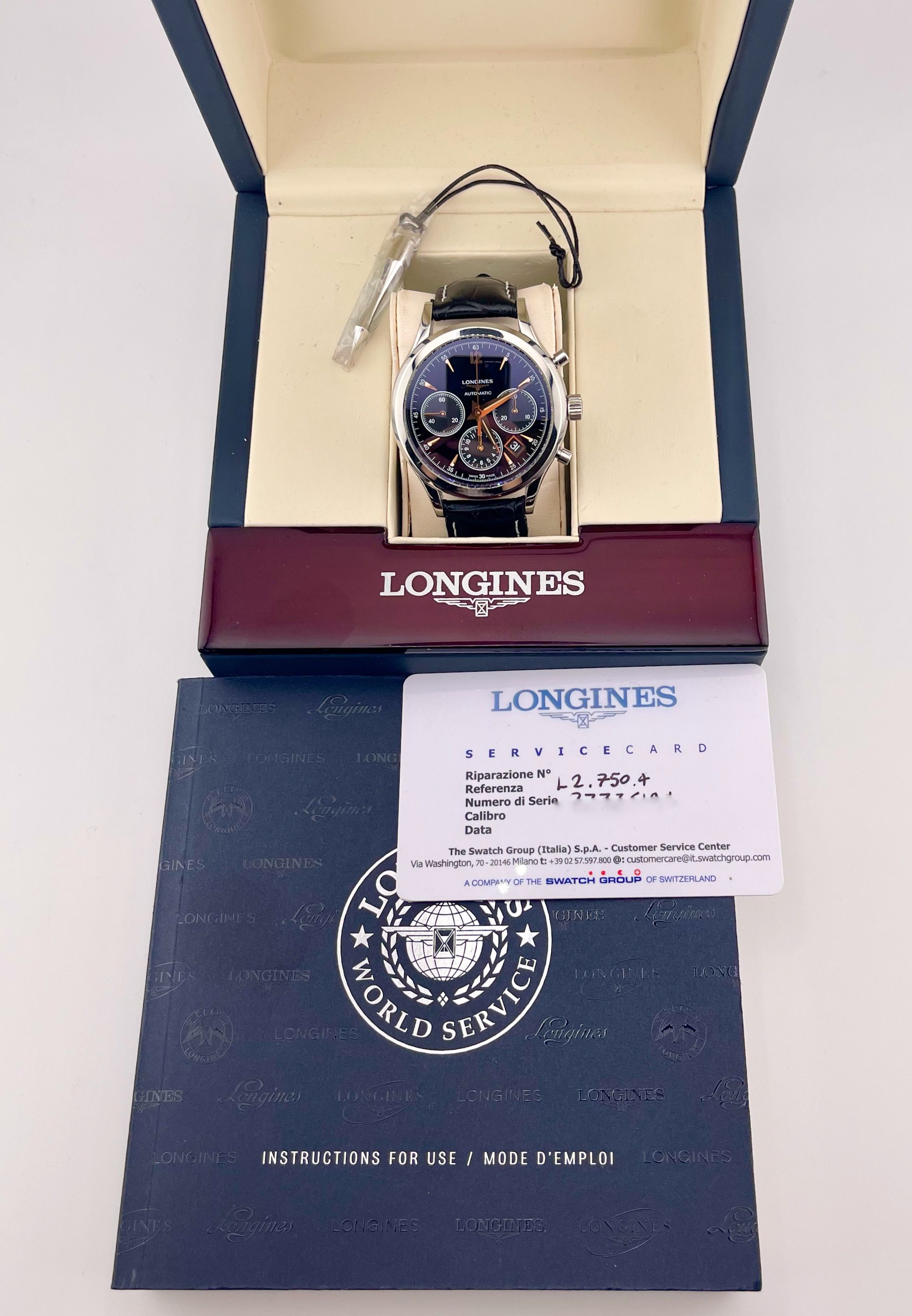 Longines Column-Wheel Chronograph L2.750.4.56.0, Caja/Tarjeta de Servicio