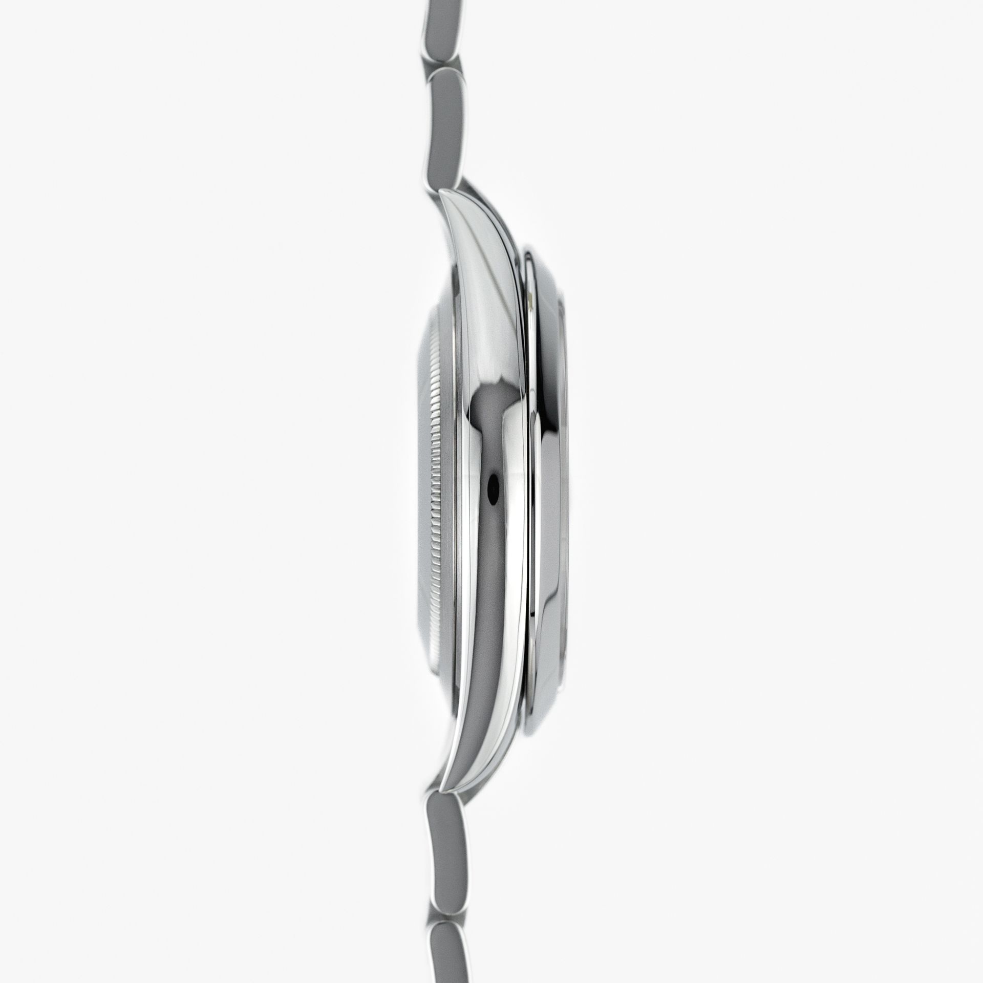 El bisel es el llamado "liso", que da un aspecto excepcionalmente elegante y limpio con una presencia distintiva en la muñeca. Y, por supuesto, la pulsera – como se puede esperar de Rolex, es de un estándar muy alto. En este caso, se trata de una pulsera Oyster, que en este tamaño presenta un cierre sólido fresado de un solo bloque de acero (y no de metal laminado, como con la mayoría de las marcas). Lo único que, en nuestra opinión, podría faltar es el sistema GlideLock del Submariner, pero aquí está presente la función EasyLink, que permite un ajuste micro rápido de 5 mm adicionales.