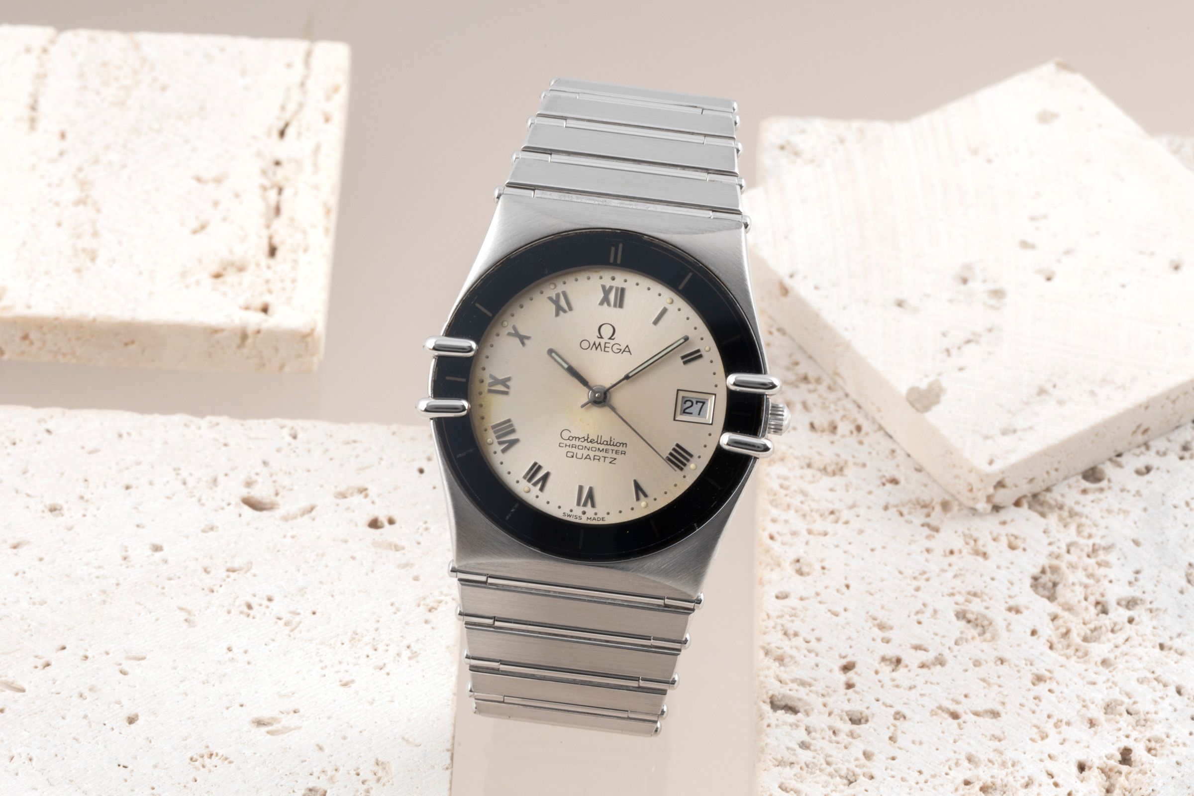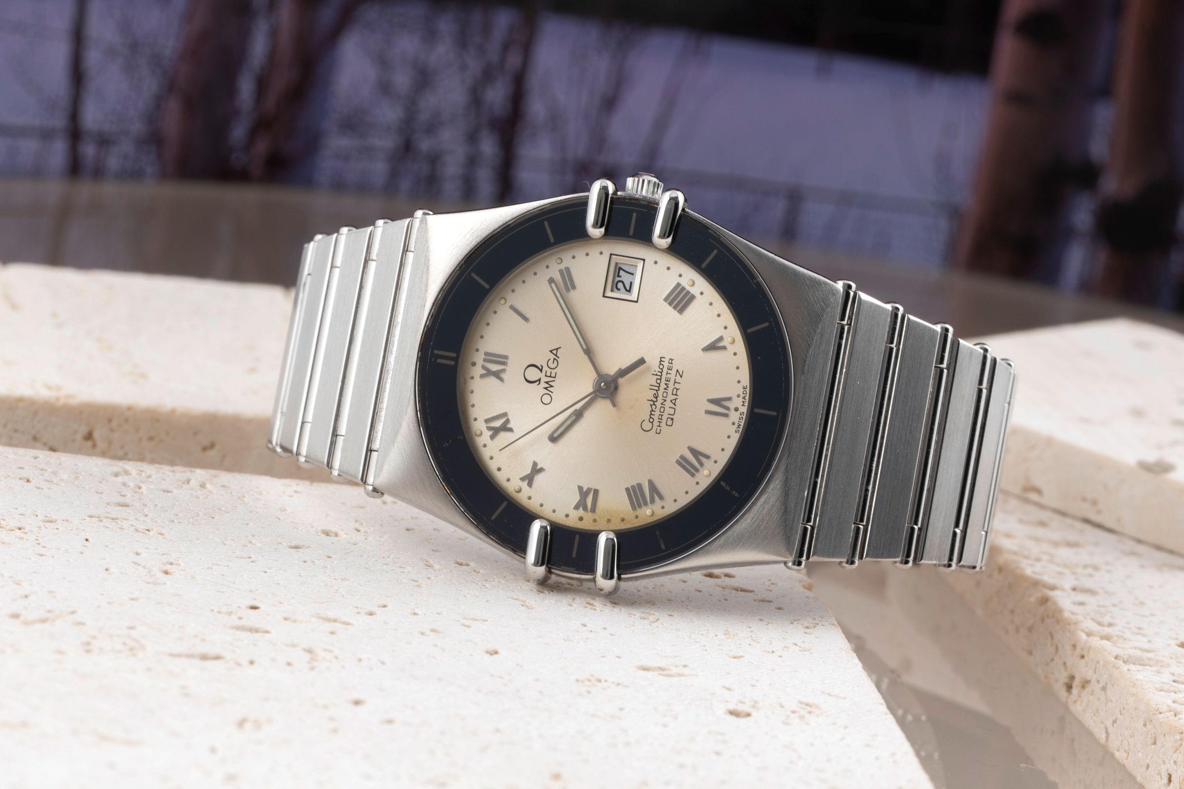 Alternative title: Omega Constellation Stahl Quarz Herrenuhr Ref. 398.0864 Box & Papiere 1985 [2504521]