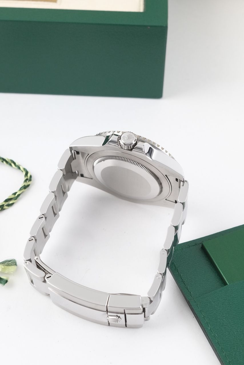 - Signos leves de uso como microarañazos o pequeños arañazos superficiales. La caja, el bisel y el brazalete conservan sus aristas definidas y su forma general. Puede haber sido pulido profesionalmente sin afectar a las líneas originales. Totalmente funcional mecánicamente.