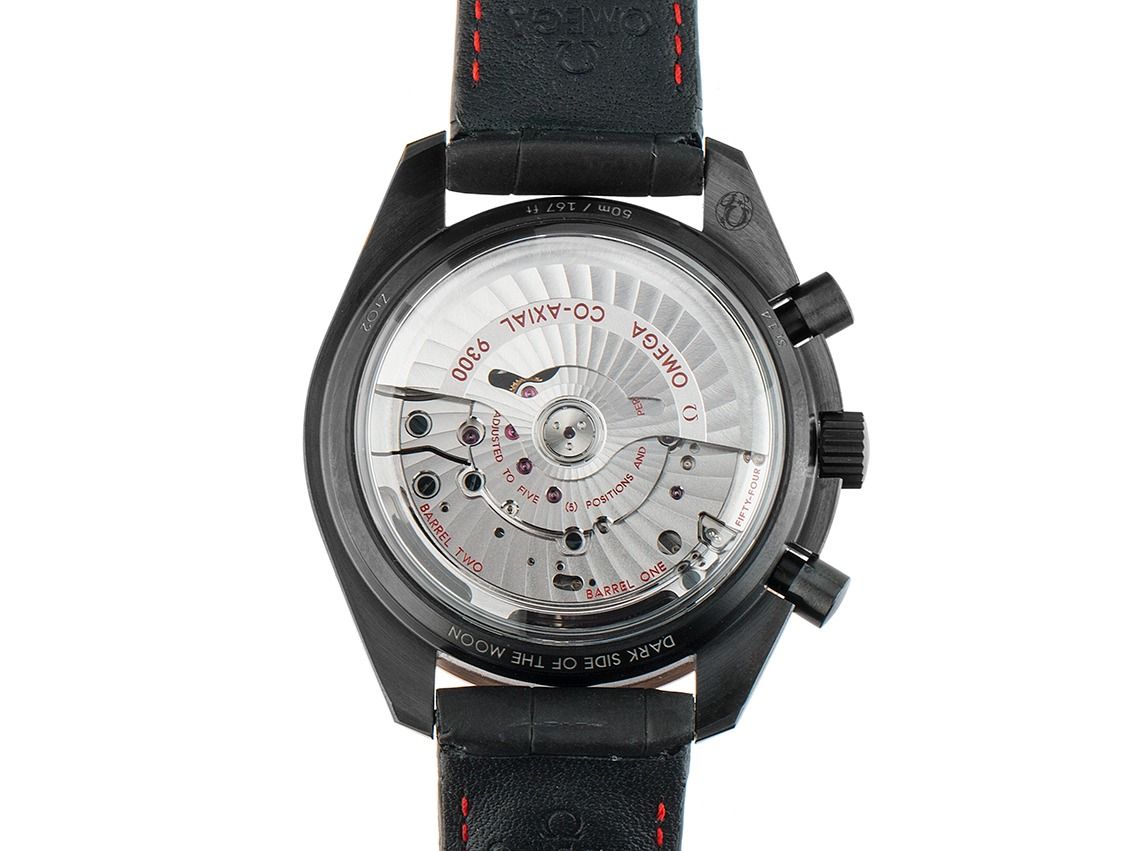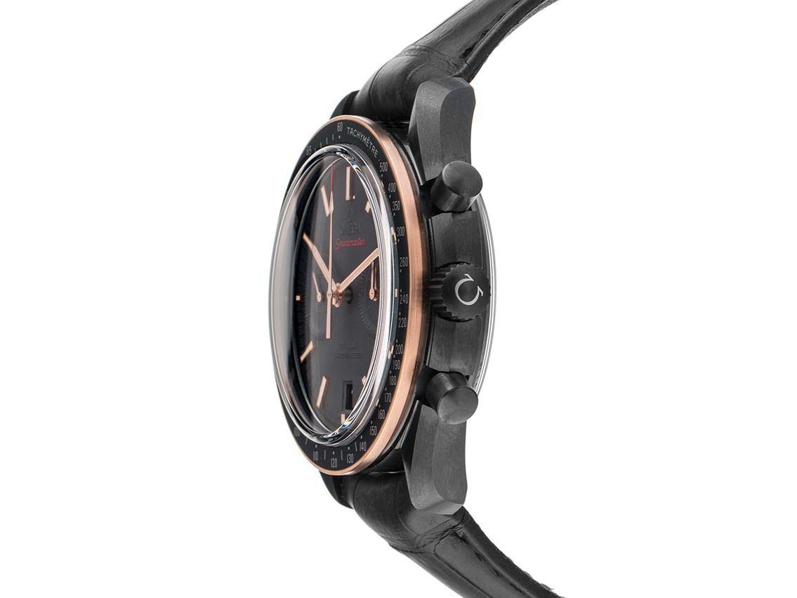 Omega Speedmaster Moonwatch Dark Side of the Moon Cerámica Negra 18kt Oro Rosado Automático Cronógrafo Correa de Piel Cierre Plegable