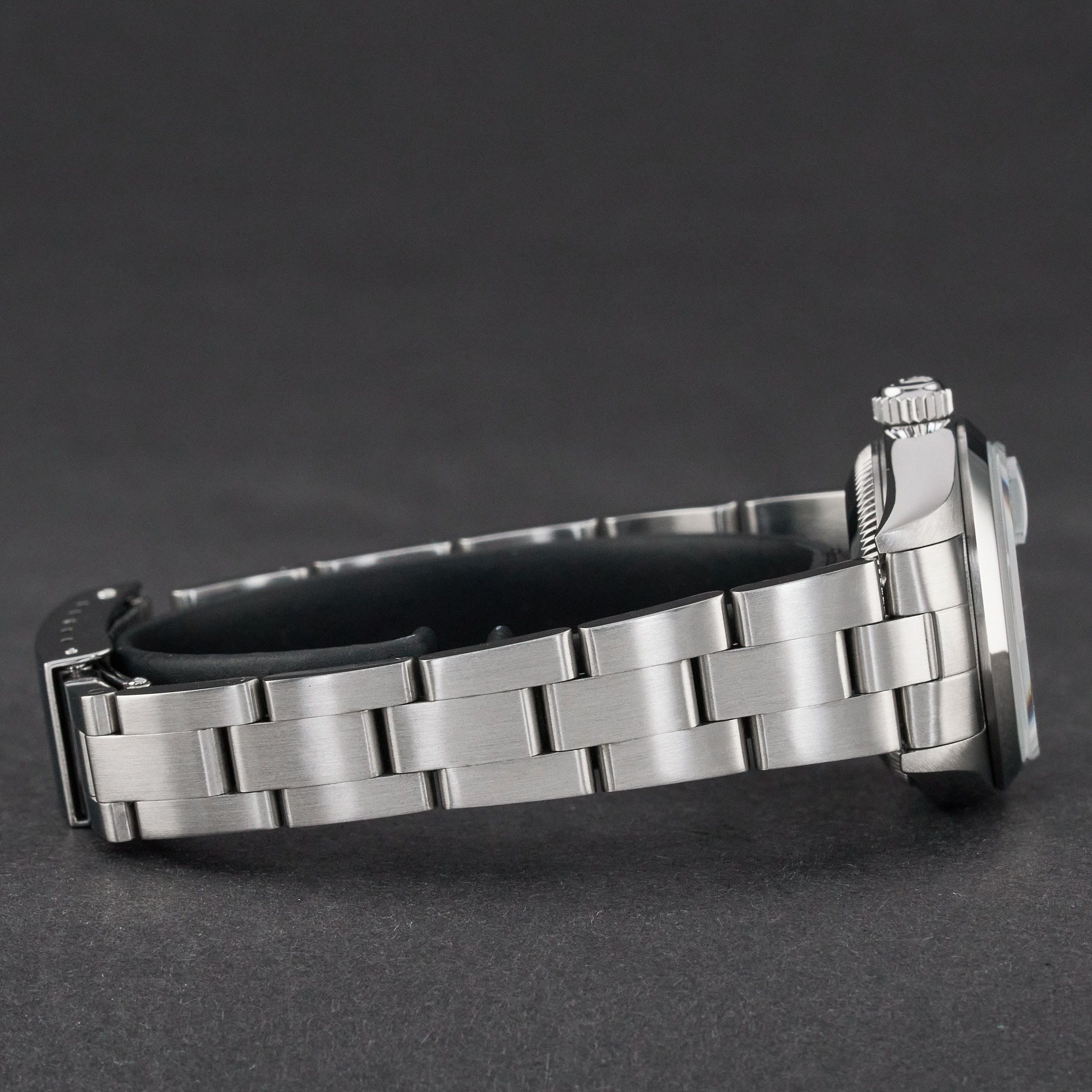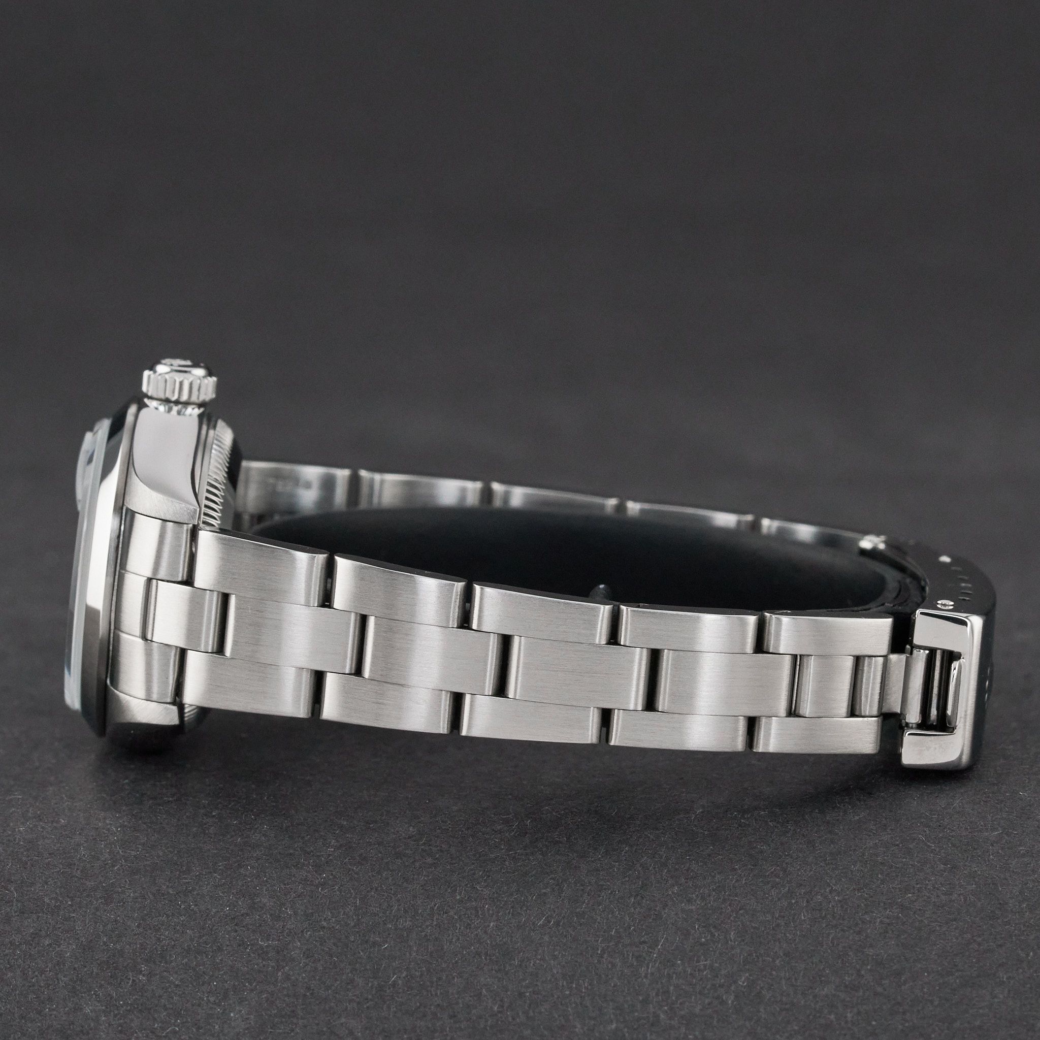 - Signos leves de uso como microarañazos o pequeños arañazos superficiales. La caja, el bisel y el brazalete conservan sus aristas definidas y su forma general. Puede haber sido pulido profesionalmente sin afectar a las líneas originales. Totalmente funcional mecánicamente.