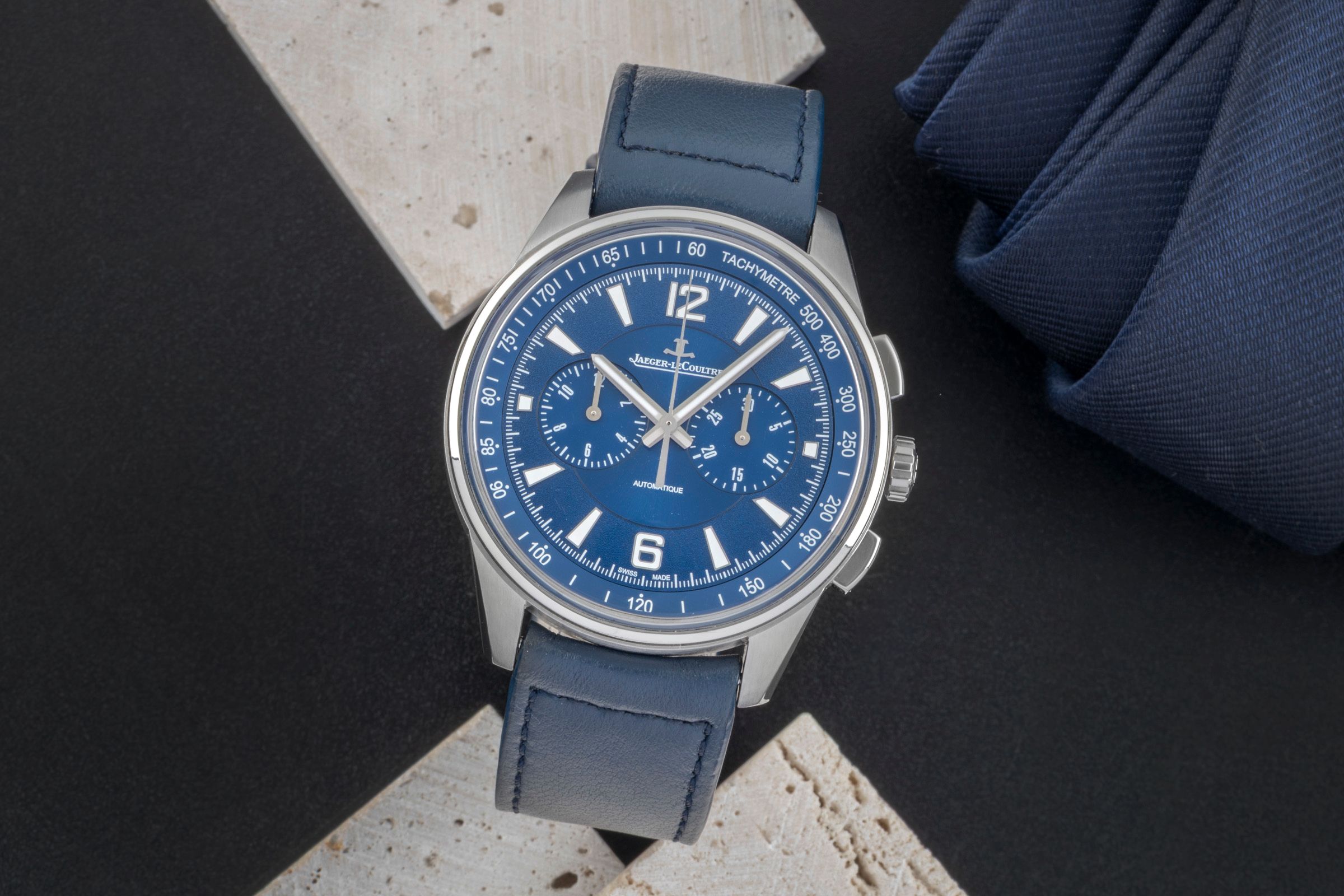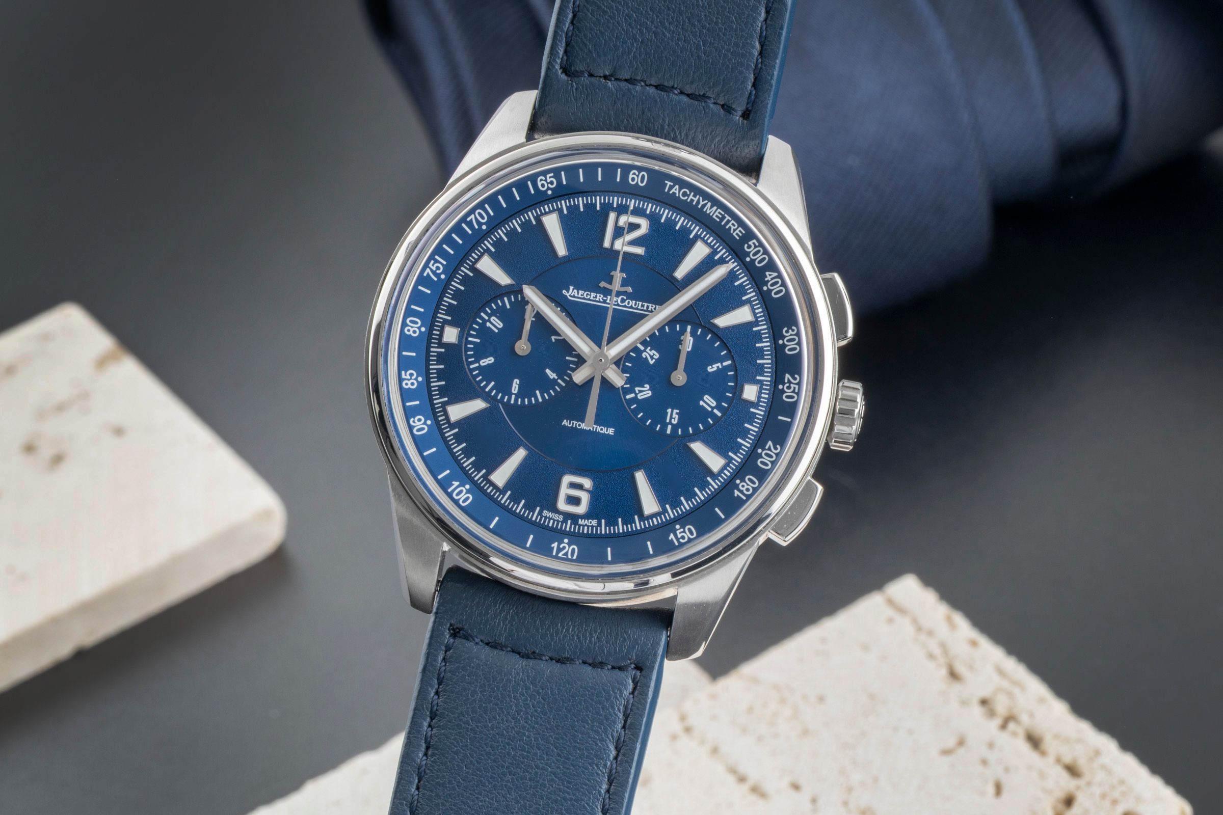 Alternative title: Jaeger-LeCoultre Q9028480 Polaris Chronograph Stainless Steel / Blue / Calf; Jaeger LeCoultre Polaris Chronograph Automatik Ref. Q9028480 842.8.C1.S Papers [2506939]