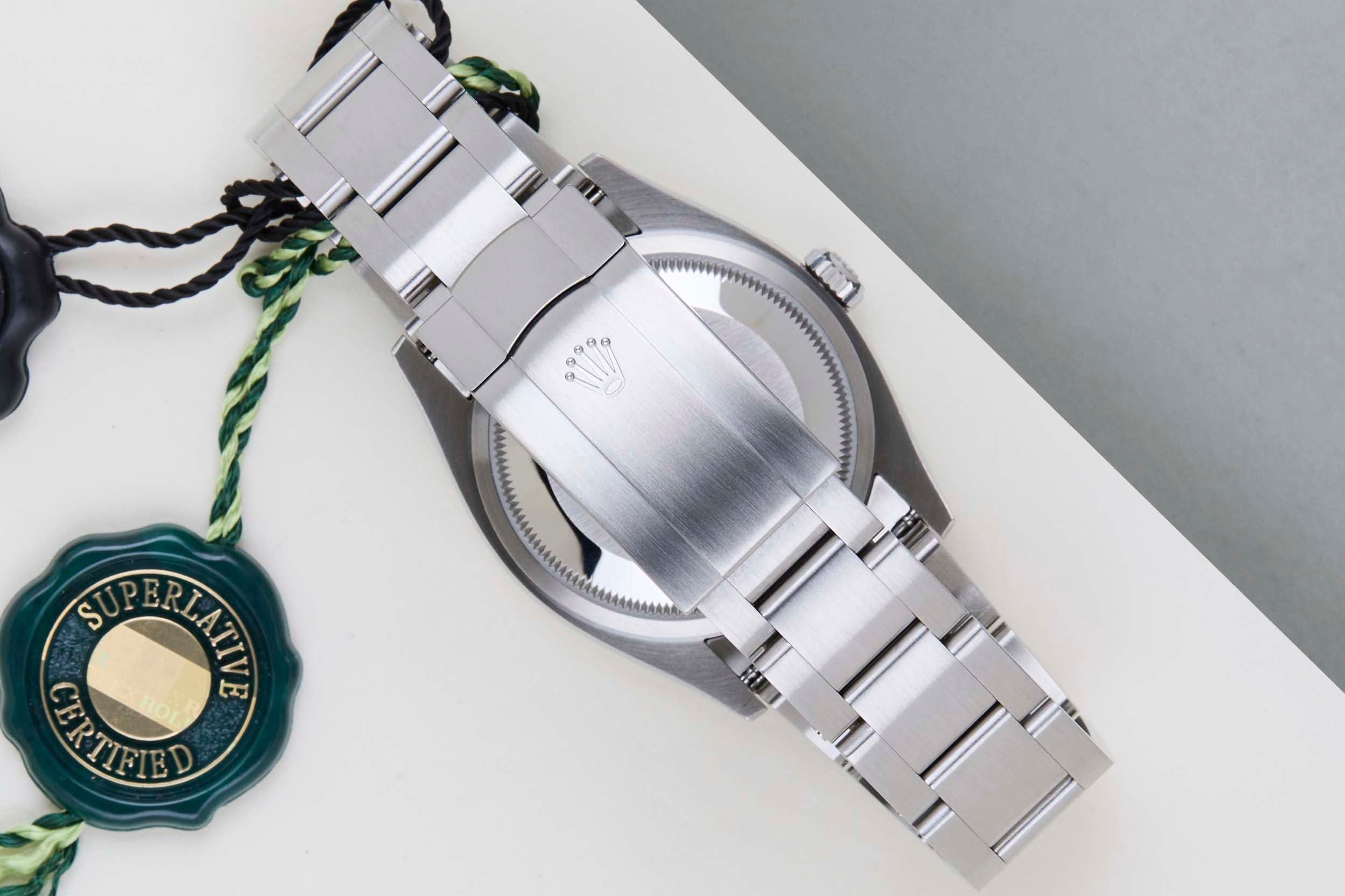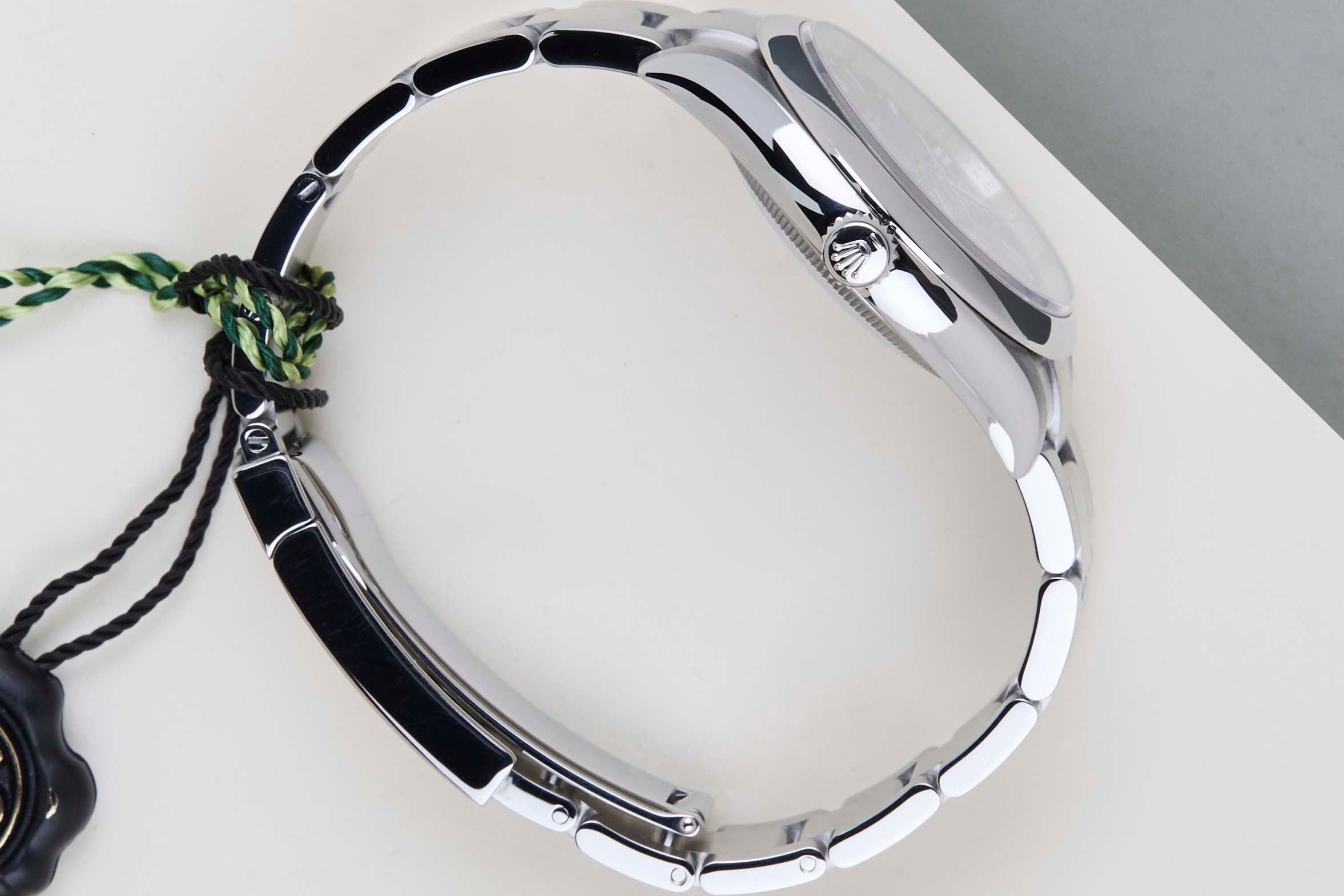 Este increíble Rolex Oyster Perpetual está en condiciones mint y viene con la tarjeta de garantía original de Rolex y su caja. Además, el reloj todavía tiene garantía mundial de Rolex hasta octubre de 2028.