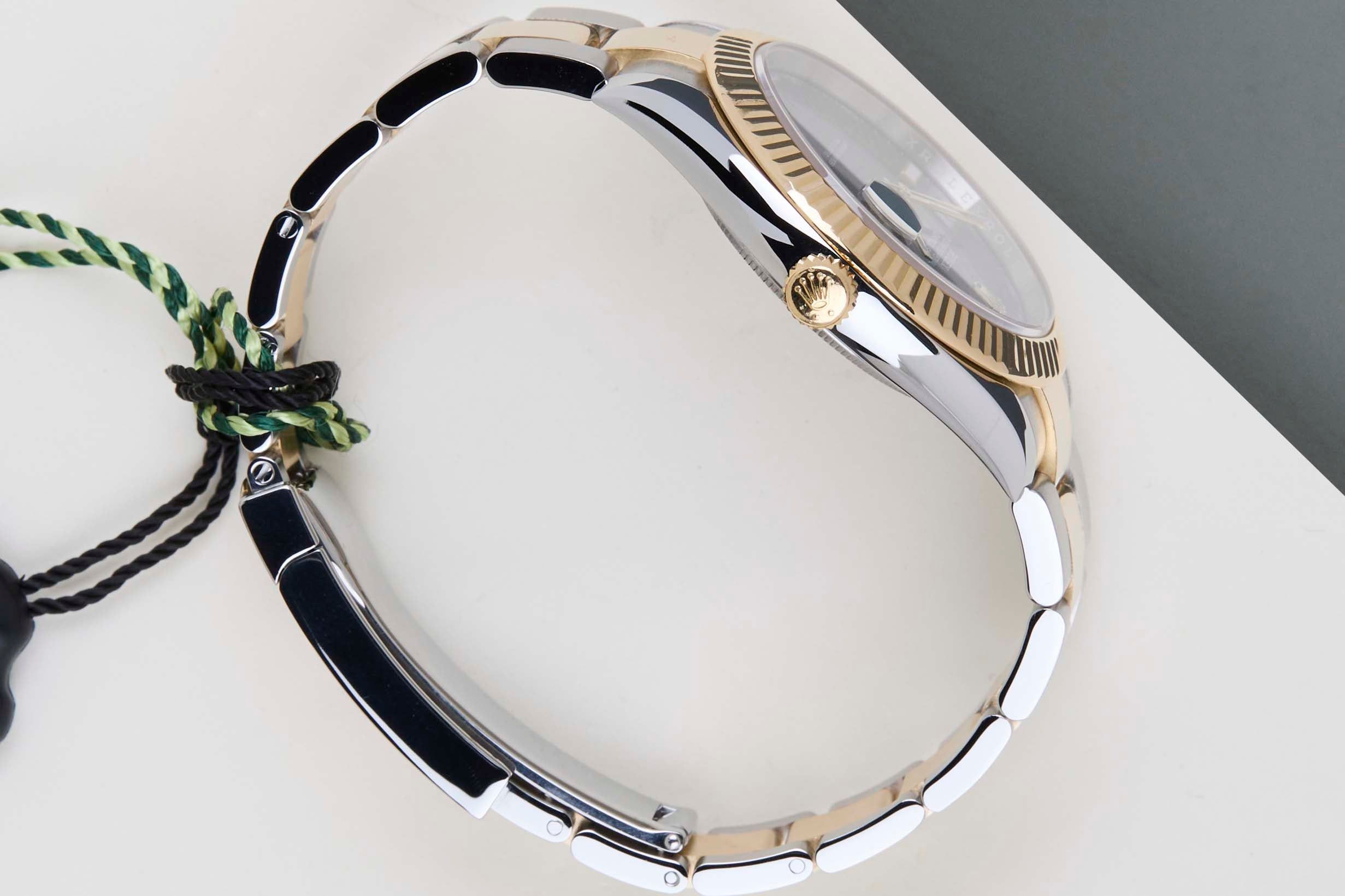 Full Set | Including Rolex White Tag | European Warranty Card (LC137 - Netherlands)Rolex introduced the original Datejust in 1945 to celebrate the company's 40th anniversary. Due to the various case sizes and materials, the Datejust has been ingrained in Rolex's history and remains incredibly popular for 75 years.This Rolex Datejust 41 'Wimbledon Dial - Oyster' was sold for the first time in April 2018.This Datejust is made of a combination of 18k Yellow Gold and stainless steel and is fitted with a Oyster bracelet, which is equipped with the Easylink. This extension, allows the wearer to either extend or shorten the bracelet by 5 millimeters, improving the wearability and usability of the watch.This Rolex Datejust 41 is in Mint Condition and comes with the original Rolex Warranty Card and box. Furthermore, the watch has been serviced by our watchmakers and therefore it comes with one year of Steiner warranty.