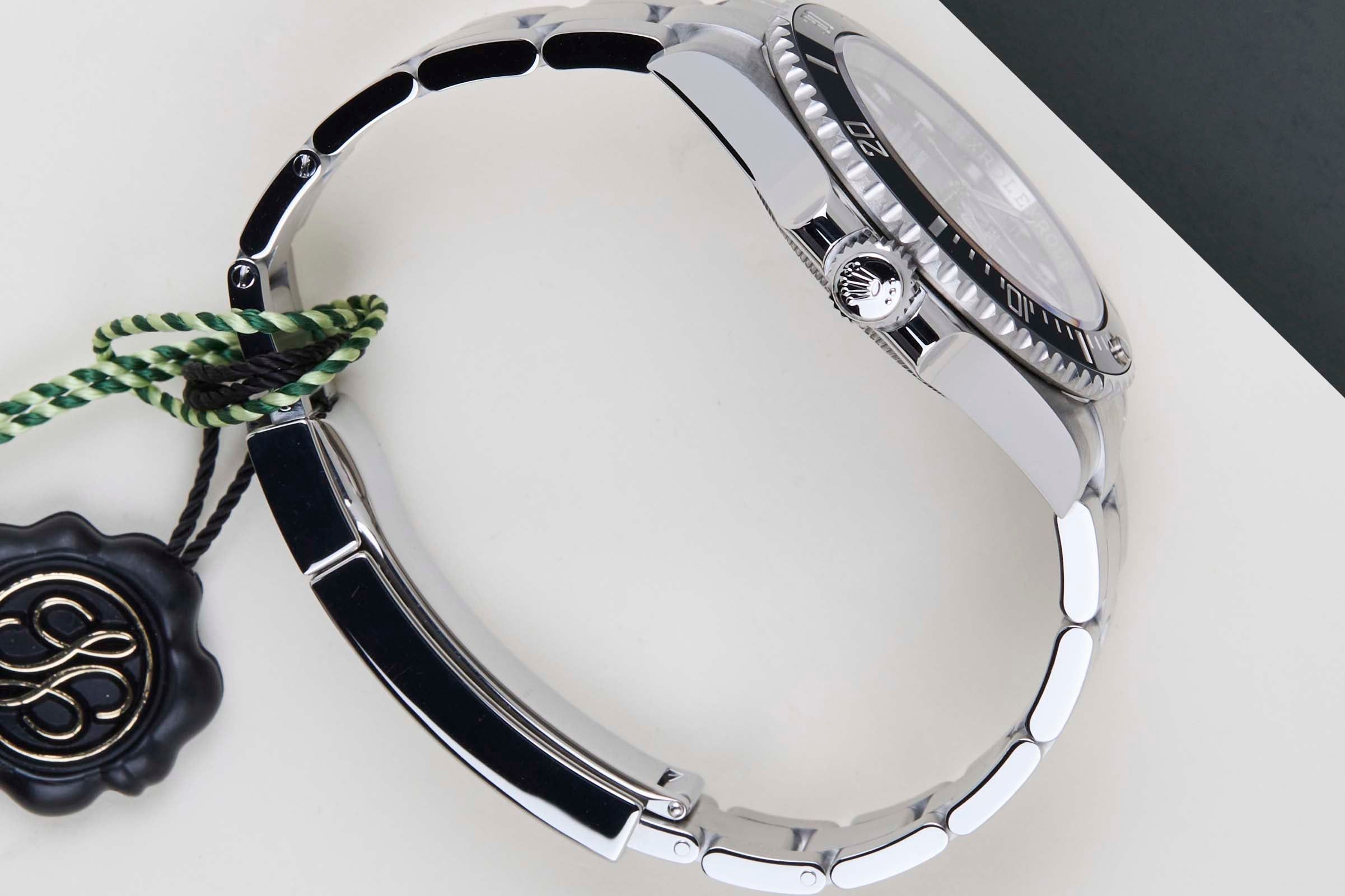 Este Rolex Submariner No Date está en estado Mint y viene con la tarjeta de garantía original de Rolex y la caja original. Además, el reloj todavía tiene garantía internacional de Rolex hasta mayo de 2027.