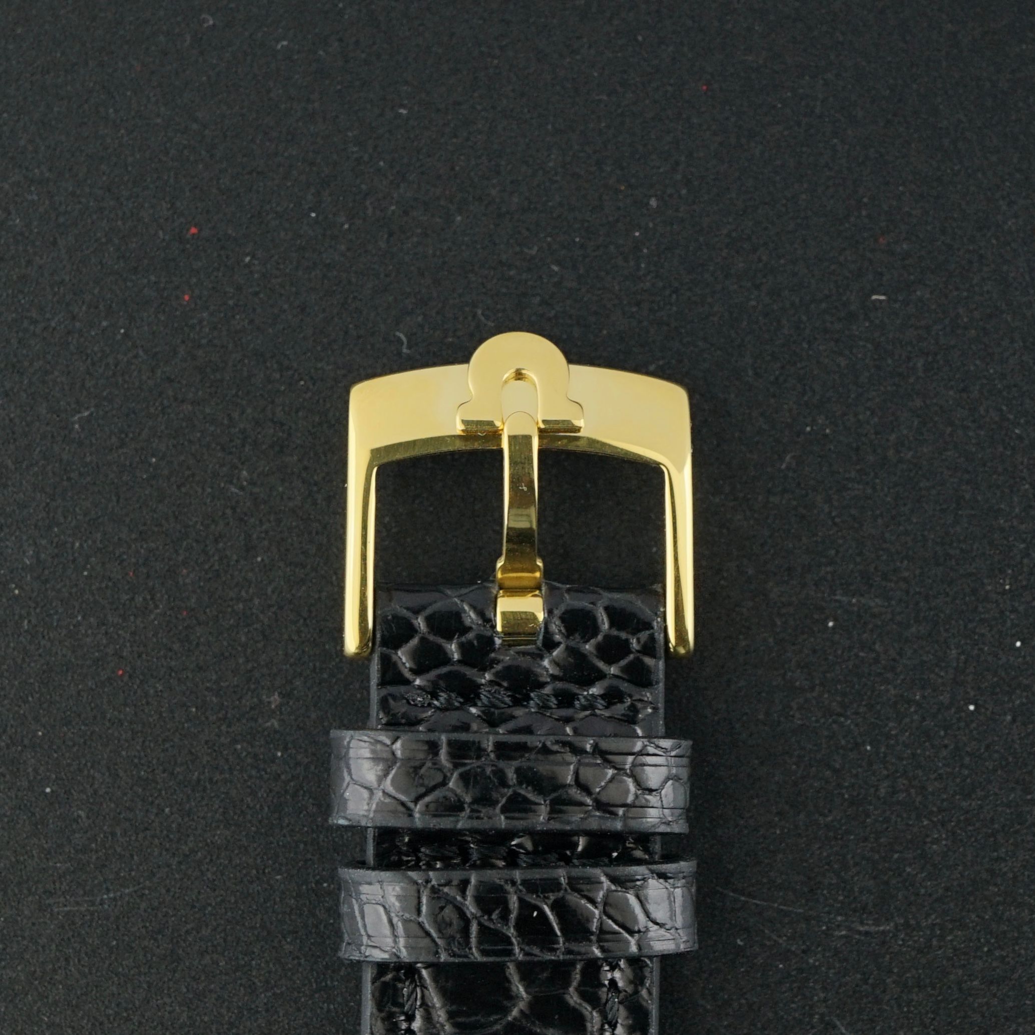 Strap: A top-grain black leather strap with a crocodile motif. (Fits a 12 to 20cm wrist)