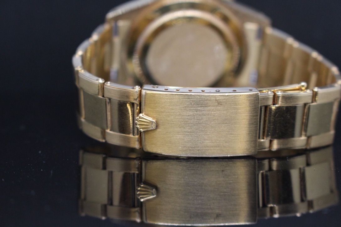 - Signos leves de uso como microarañazos o pequeños arañazos superficiales. La caja, el bisel y el brazalete conservan sus aristas definidas y su forma general. Puede haber sido pulido profesionalmente sin afectar a las líneas originales. Totalmente funcional mecánicamente.