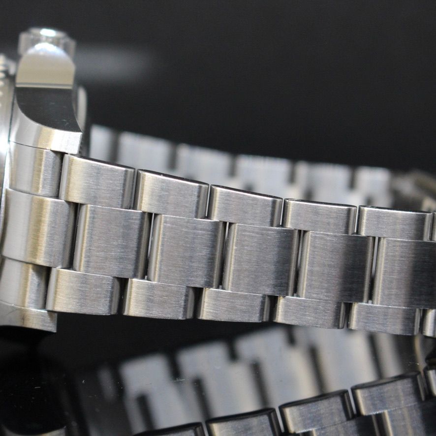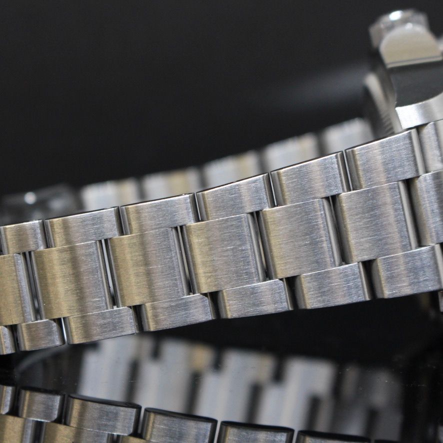 - Signos leves de uso como microarañazos o pequeños arañazos superficiales. La caja, el bisel y el brazalete conservan sus aristas definidas y su forma general. Puede haber sido pulido profesionalmente sin afectar a las líneas originales. Totalmente funcional mecánicamente.