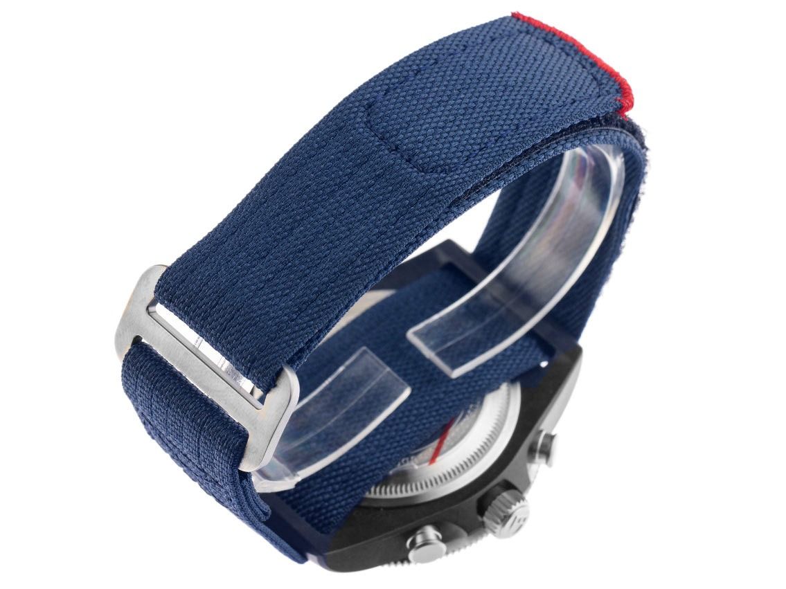 Tudor Pelagos FXD Chrono Carbon Automatik Armband TextilGehäuse Carbon satiniert, Gehäusedurchmesser ohne Krone 43mm, Gehäusehöhe 13,6mm. Lünette Carbon mit grauem Inlay und 60-Minuten Skala, beidseitig drehbar. Armband Textil blau, Anstoßbreite 22mm, Klettverschluss-System. Zifferblatt blau matt mit aufgesetzten Leuchtindexen und Leuchtzeigern. Uhrwerk Automatik, Manufakturkaliber MT5813 mit 47 Edelsteinen, Gangreserve ca. 70 Stunden. Anzeige von Stunde und Minute über Zeiger aus der Mitte kleine Sekunde mit Sekundenstopp zur sekundengenauen Einstellung der Uhrzeit bei 9 Uhr, Datumsanzeige mit Schnellverstellung bei 6 Uhr. Saphirglas kratzfest. Krone verschraubbar mit Flankenschutz und Hersteller-Logo. Boden Edelstahl verschraubt und graviert mit Alinghi Red Bull Racing Edition. Gewicht der Uhr inklusive Armband 90g. Wasserdicht bis 20 ATM. Referenznummer: M25807KN-0001, ID: ST116084080426H-5650, Artikelnummer: 10000085445. Original Tudor Box mit Umkarton und Garantie Papiere von März 2026 sowie Beschreibung, Full Set. Ungetragen. Lieferzeit sofort.