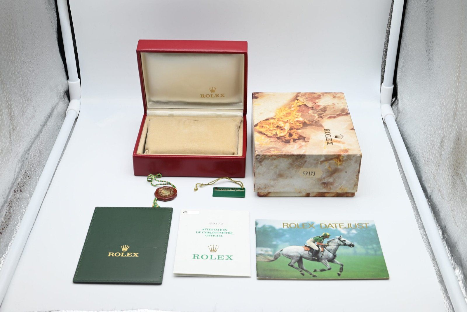 Rolex Lady-Datejust 69173 with the black diamond dial from 1994 in excellent condition, comes complete with the full set. All of our watches have been thoroughly checked by our own watchmaker and serviced when needed.