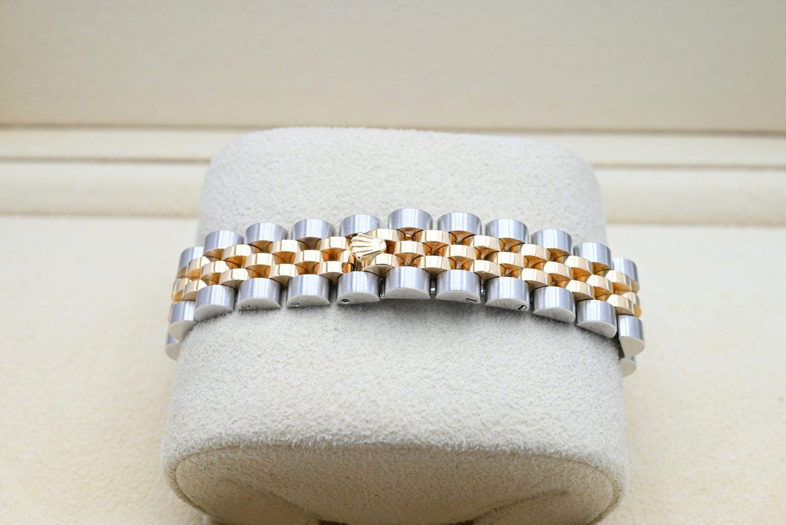 - Signos leves de uso como microarañazos o pequeños arañazos superficiales. La caja, el bisel y el brazalete conservan sus aristas definidas y su forma general. Puede haber sido pulido profesionalmente sin afectar a las líneas originales. Totalmente funcional mecánicamente.