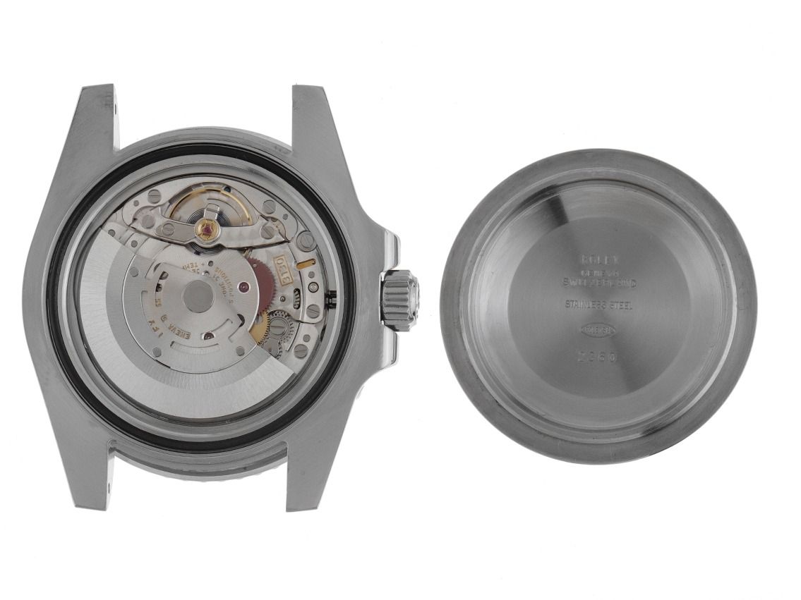 - Signos leves de uso como microarañazos o pequeños arañazos superficiales. La caja, el bisel y el brazalete conservan sus aristas definidas y su forma general. Puede haber sido pulido profesionalmente sin afectar a las líneas originales. Totalmente funcional mecánicamente.