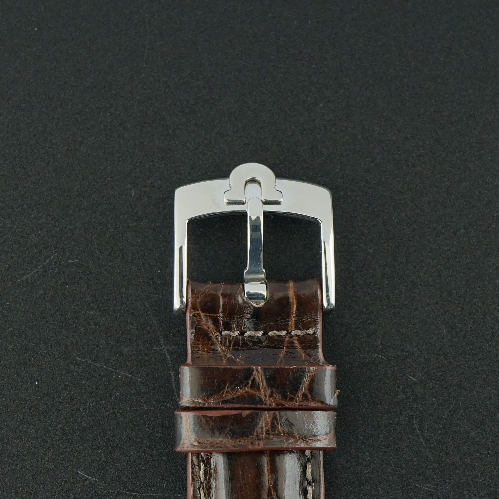 Strap: A brown top-grain leather strap with crocodile motif. (Fits a 12 to 20 cm wrist)