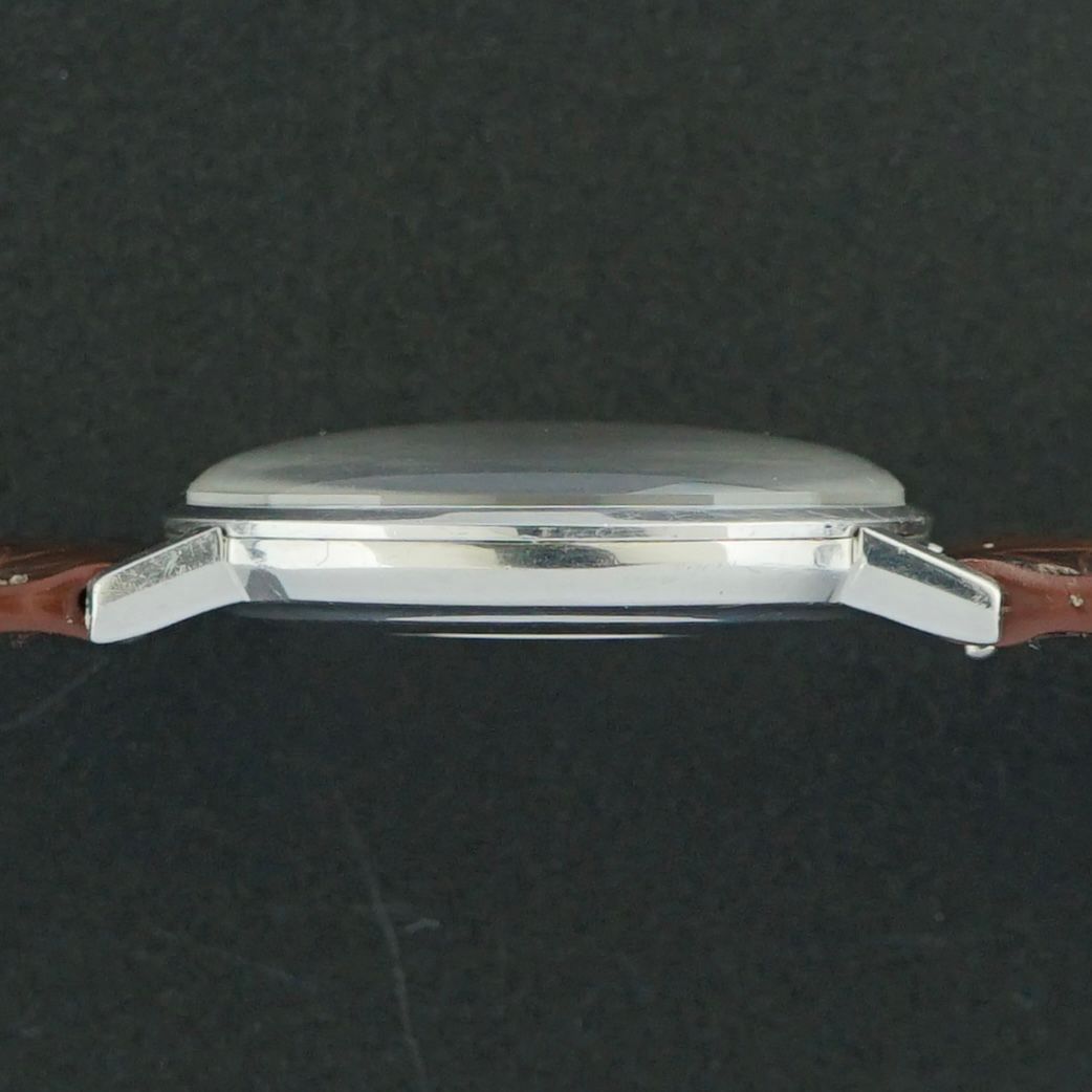 Este Omega Seamaster vintage de 1962 presenta la tipografía “Long S” de Seamaster y comparte el mismo lenguaje de diseño y dimensiones que los modelos posteriores Seamaster De Ville, lo que lo convierte en un verdadero ejemplo pre-De Ville. La hermosa esfera blanca con efecto sol muestra pequeñas imperfecciones, con un pequeño rasguño entre las marcas de las 4 y 5 en punto y un rasguño minúsculo entre las marcas de las 7 y 8 en punto, pero sigue en general en hermosa condición. La caja de acero inoxidable mide 34,5 milímetros de ancho y solo 9,6 milímetros de grosor gracias al movimiento manual Calibre 610 en su interior, que fue revisado en abril de 2026 y ahora funciona bien. El reloj está acompañado de una correa de cuero de grano superior con un motivo de cocodrilo. En general, esta pieza está en gran estado y será un hermoso reloj vintage en cualquier colección.