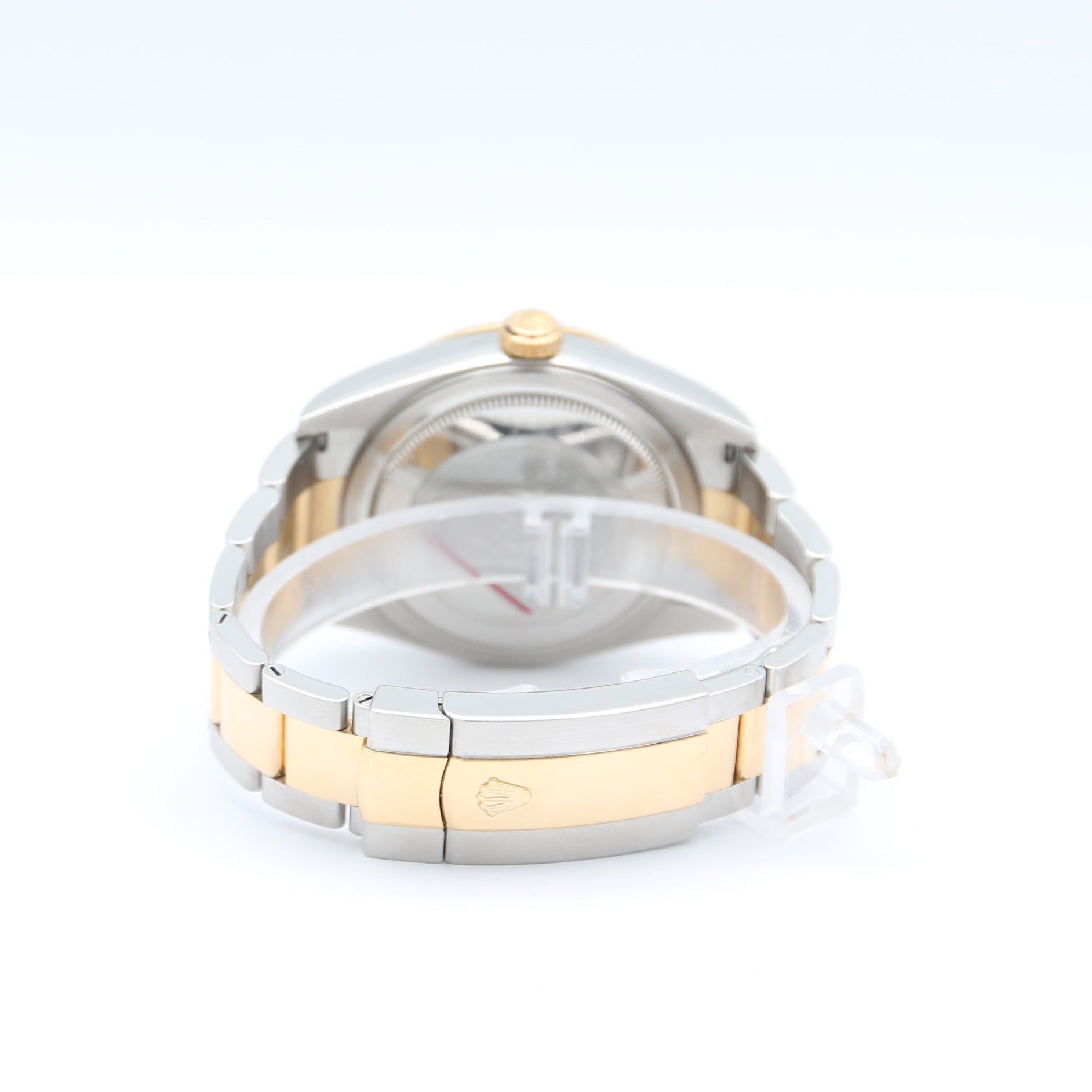 En venta un Rolex Sky Dweller de acero y oro de segunda mano, ref. 326933. La caja Oyster tiene un diámetro de 42 mm y un grosor de 14,10 mm, lo que lo convierte en el reloj "elegante" más grande producido por la marca. El propósito del Sky-Dweller era introducir una pieza para el moderno viajero que utiliza su reloj tanto para utilidad como para estatus. Rolex escuchó los deseos de muchas personas para producir un reloj más grande, un reloj diario que no sea deportivo, y también entendió que algo que muchos de sus clientes tienen en común es viajar. El movimiento automático calibre 9001, fabricado internamente, ofrece al portador una lectura de hora GMT diferente en comparación con otros relojes de Rolex equipados con manecillas GMT, e introdujo uno de los mejores sistemas de calendario anual del mercado. La parte más única del Sky-Dweller en comparación con otros relojes Rolex es el anillo excéntrico expuesto en la esfera que se utiliza para mostrar la hora GMT. La segunda zona horaria se lee debajo de las 12 en punto a través del puntero de flecha rojo y blanco. El modelo hizo su debut en 2017.