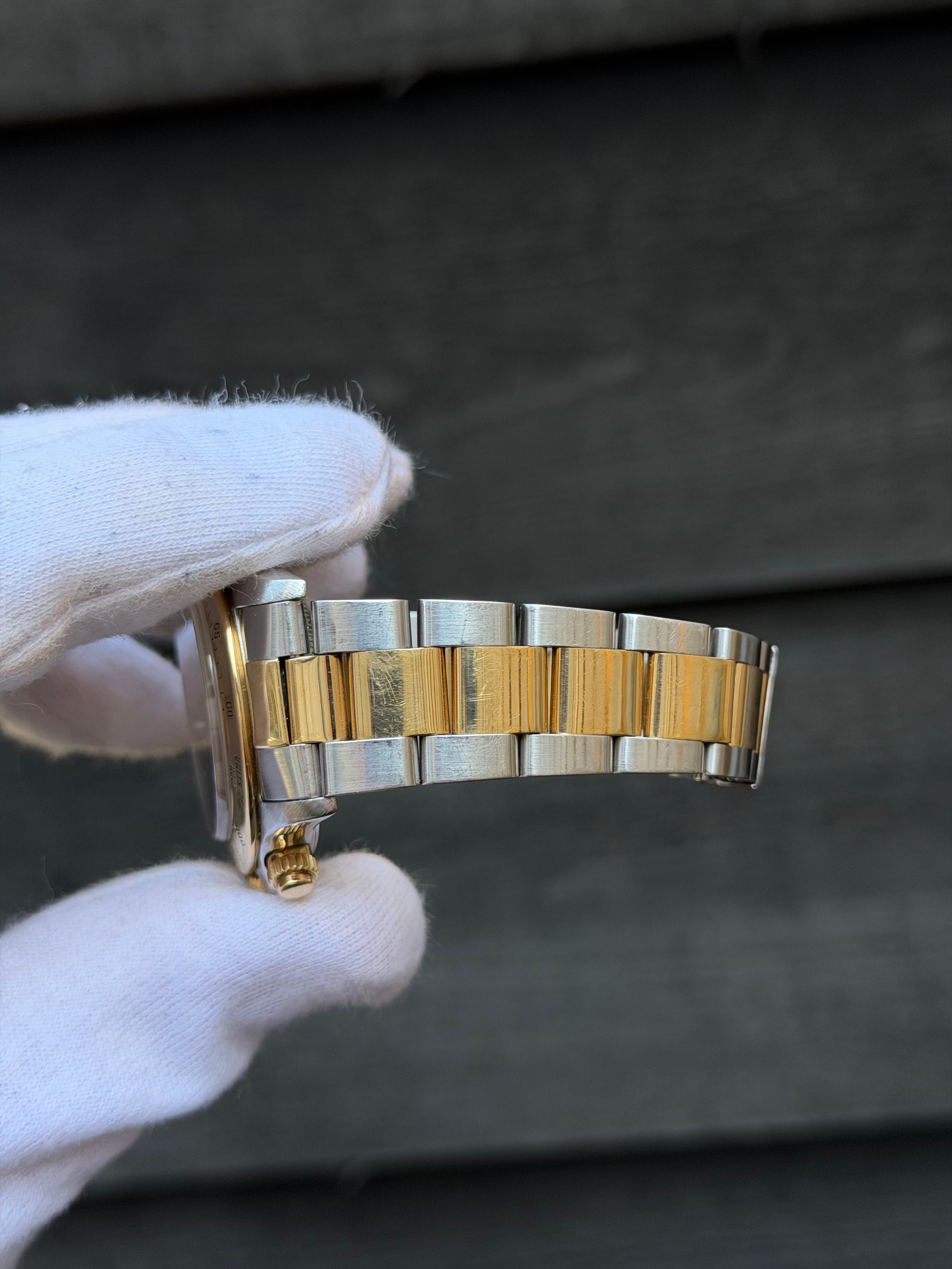 The combination of stainless steel and 18k yellow gold (Rolesor), paired with the champagne dial, gives the watch a warm and classic appearance. The contrasting subdials and the red “Daytona” text add just the right amount of sportiness to keep the overall look perfectly balanced.