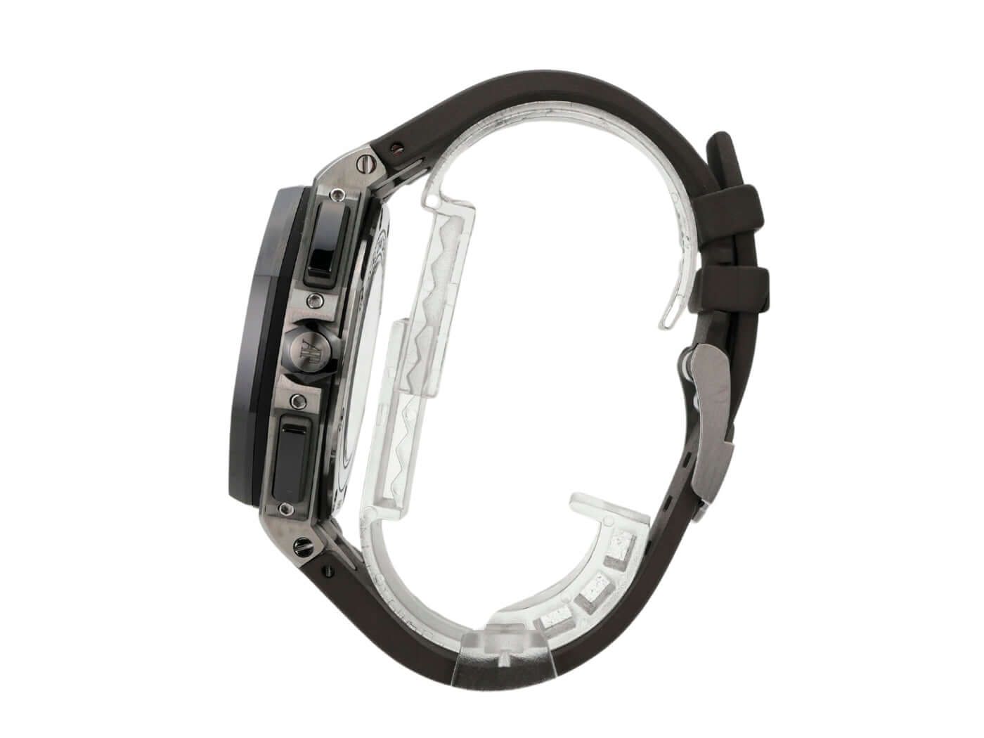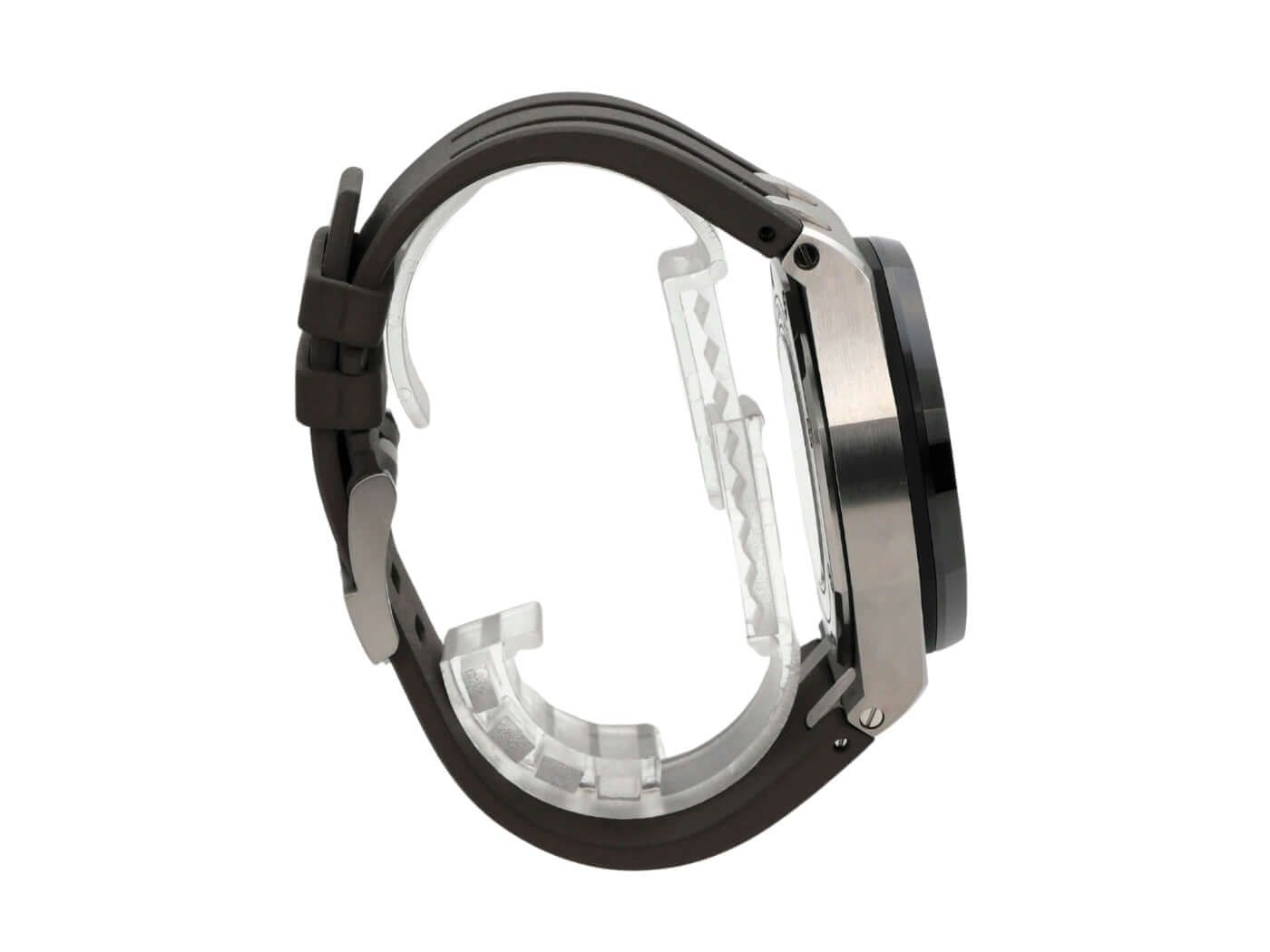 Caja hecha de titanio pulido y acabado satinado, diámetro de la caja 44 mm, altura de la caja 14.4 mm, bisel de cerámica atornillado, correa de goma gris con hebilla de pin de titanio, esfera gris con índices y marcadores luminosos, movimiento automático, calibre de manufactura 3126 / 3840 con 59 rubíes, frecuencia 21,600 A/h, reserva de marcha de aproximadamente 50 horas, indicador de fecha, cristal de zafiro antirreflectante, fondo de caja atornillado y grabado, resistente al agua hasta 10 bar.