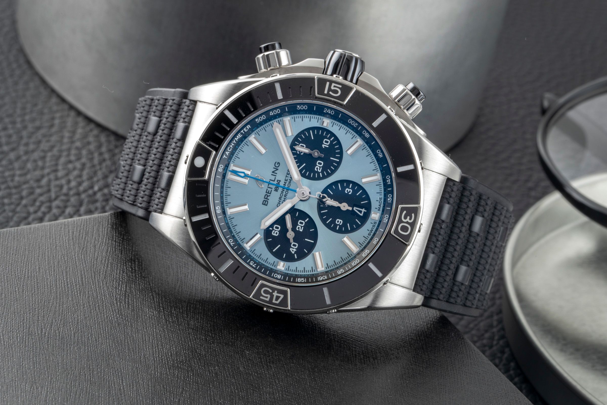 Alternative title: Breitling PB0136251C1S1 Chronomat B01 44 Stainless Steel - Platinum / Ice Blue / Rubber Rouleaux; Breitling Chronomat 44 B01 Ice Blue Stahl / Platin Ref. PB0136251C1S1 B&P 2025 [2602316]
