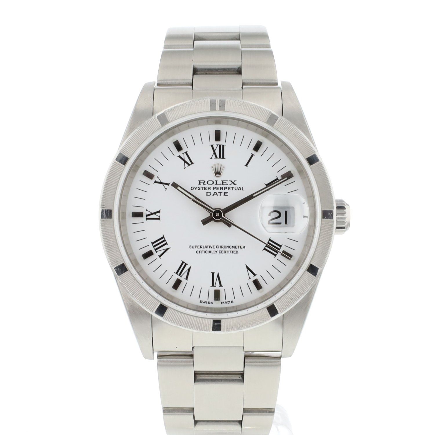 Date 34MM Steel White Roman Dial