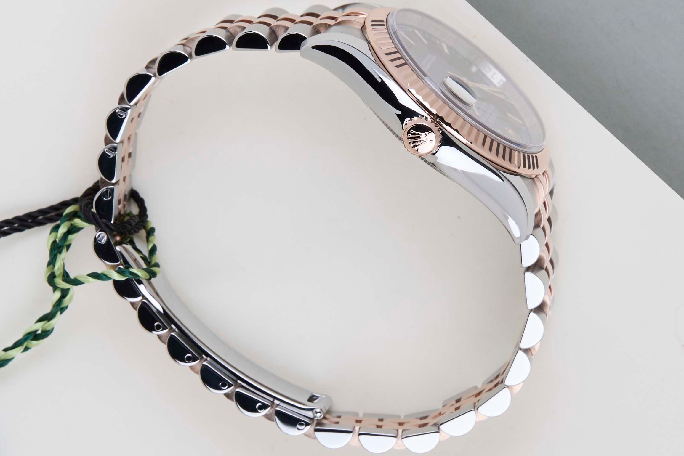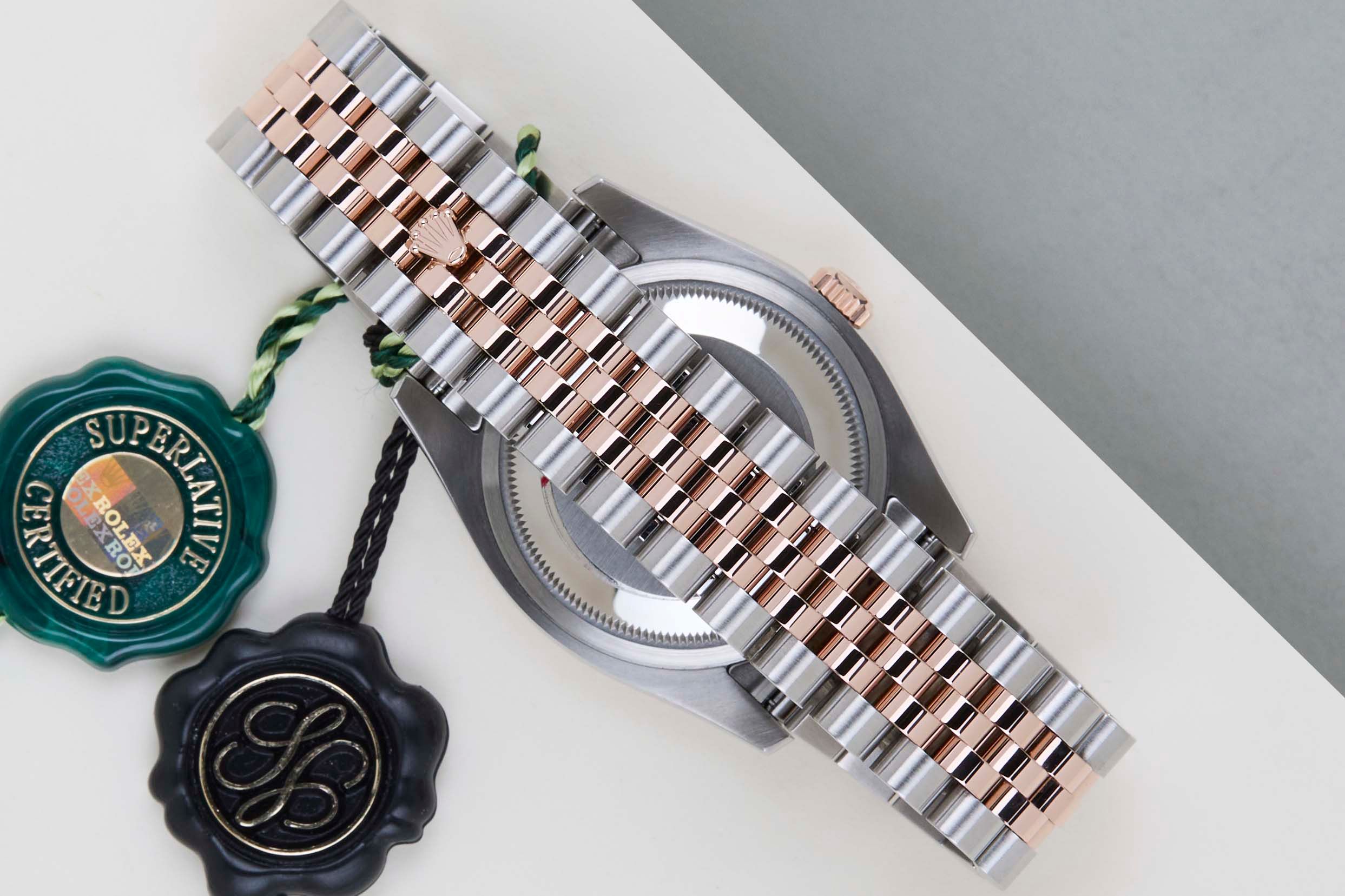 Rolex presentó el Datejust original en 1945 para celebrar el 40 aniversario de la compañía. Debido a los diversos tamaños y materiales de la caja, el Datejust se ha arraigado en la historia de Rolex y sigue siendo increíblemente popular durante 75 años. Este Rolex Datejust 36 Everose/Acero "Esfera Negra - Fecha Roulette - Jubilee" se vendió por primera vez en septiembre de 2021. Este Rolex Datejust está hecho de una combinación de oro Everose de 18 quilates y acero inoxidable, y está equipado con una pulsera Jubilee que oculta el cierre de corona. Este reloj viene con la caja y los papeles originales de Rolex. Además, el reloj ha sido revisado por nuestro relojero, por lo que incluye un año de garantía Steiner.