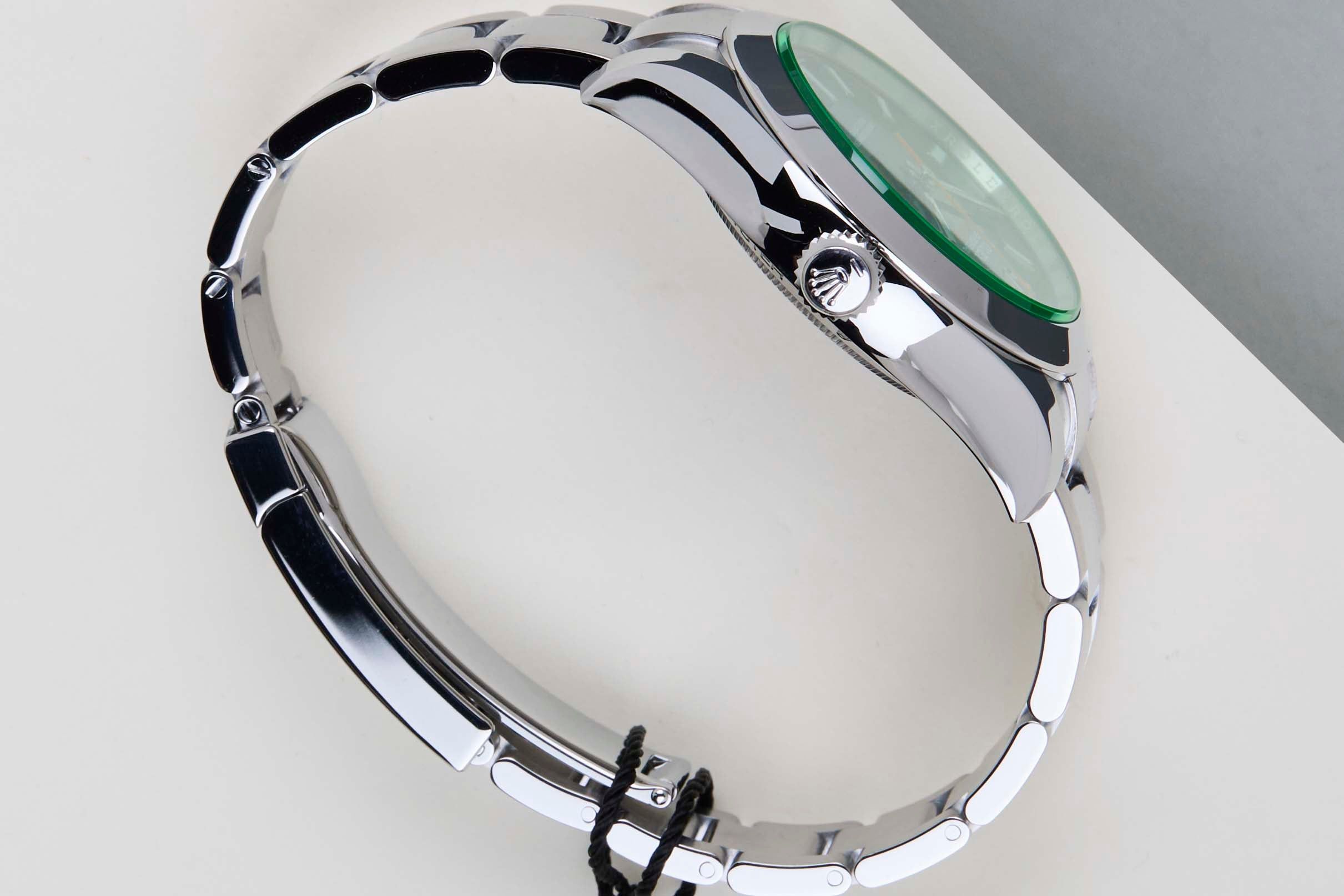 The Rolex Milgauss was originally introduced in 1956 and has undergone several updates and redesigns over the years. The Rolex Milgauss is a watch that was designed for people who work in environments where strong magnetic fields can interfere with the accuracy of a mechanical timepiece.The name "Milgauss" comes from the French word "mille," which means "thousand," and the unit of magnetic field strength, the "gauss." The watch is able to withstand magnetic fields up to 1,000 gauss, hence the name.This Rolex Milgauss 'Z-Blue Dial' was sold for the first time in August 2021.The Rolex Milgauss reference 116400GV is a version of the watch that was introduced in 2007. The 116400GV also features a green sapphire crystal, which is a signature feature of this generation of the Milgauss.This Rolex Milgauss 'Z-Blue Dial' is in Mint condition and comes with the original Rolex Warranty Card and box. Furthermore, the watch has been checked by our watchmakers and therefore it comes with one year of Steiner warranty.