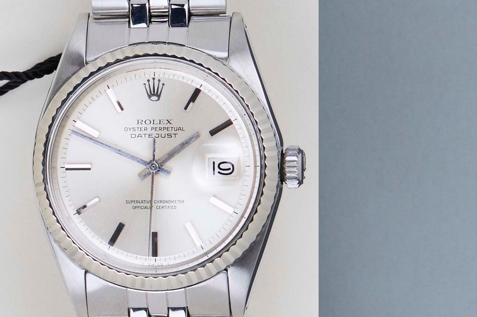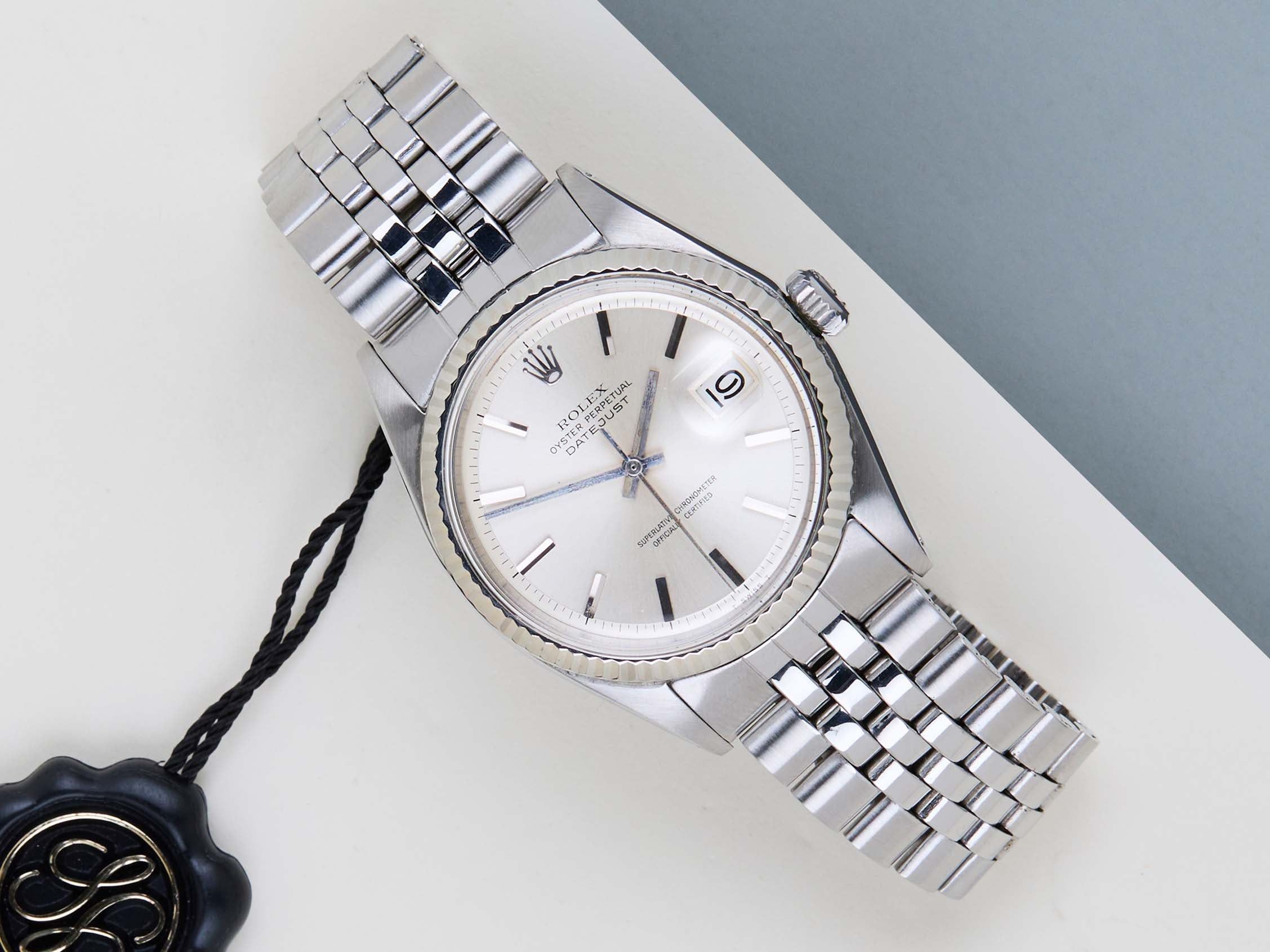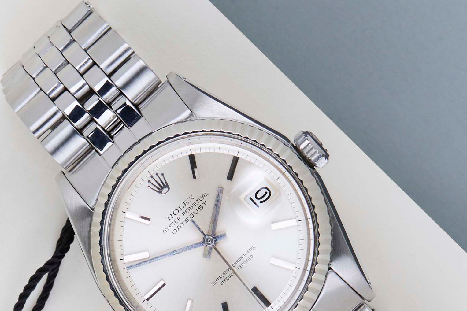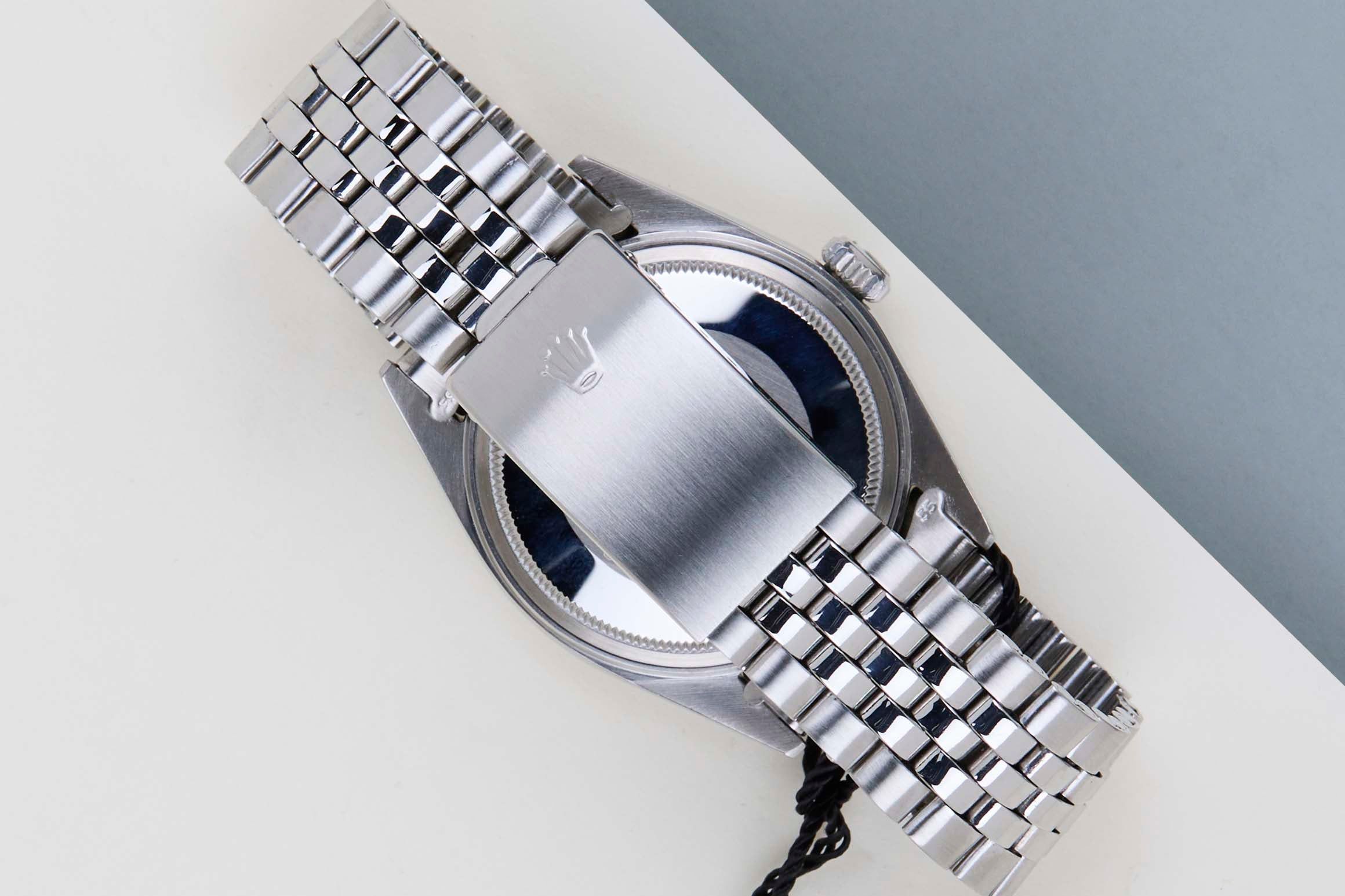 Original Rolex 'No Lume' Dial | 2.804.XXX Serial | Original Folded Bracelet | Bracelet Code 62510H | End Links 55 | Open 6 & 9 Date Wheel Rolex introduced the original Datejust in 1945 to celebrate the company's 40th anniversary. Due to the various case sizes and materials, the Datejust has been ingrained in Rolex's history and remains incredibly popular for 75 years.This Datejust is made of a combination of 18k White Gold and stainless steel and is fitted with a Jubilee bracelet. This pristine 1601 is equipped with an original 'No Lume' Pie-Pan Dial. In addition, the Datejust is equipped with an Open 6 & 9 Date Wheel.This 1601 reference features a Silver dial with a slight sunburst effect and unusual 'No Lume' Dial. These 'No Lume' dials were specifically produced for the Japanese Market, since Japan didn't allow the use of Tritium. The indexes and hands are made of the White Gold without the use of Tritium, given it a more clean look. Consequently, a 'No Lume' dial is extremely desirable for watch collectors.The production year of this Datejust is 1971. Furthermore, the watch has been serviced by our watchmaker, and therefore it comes with One Year of Steiner Warranty.