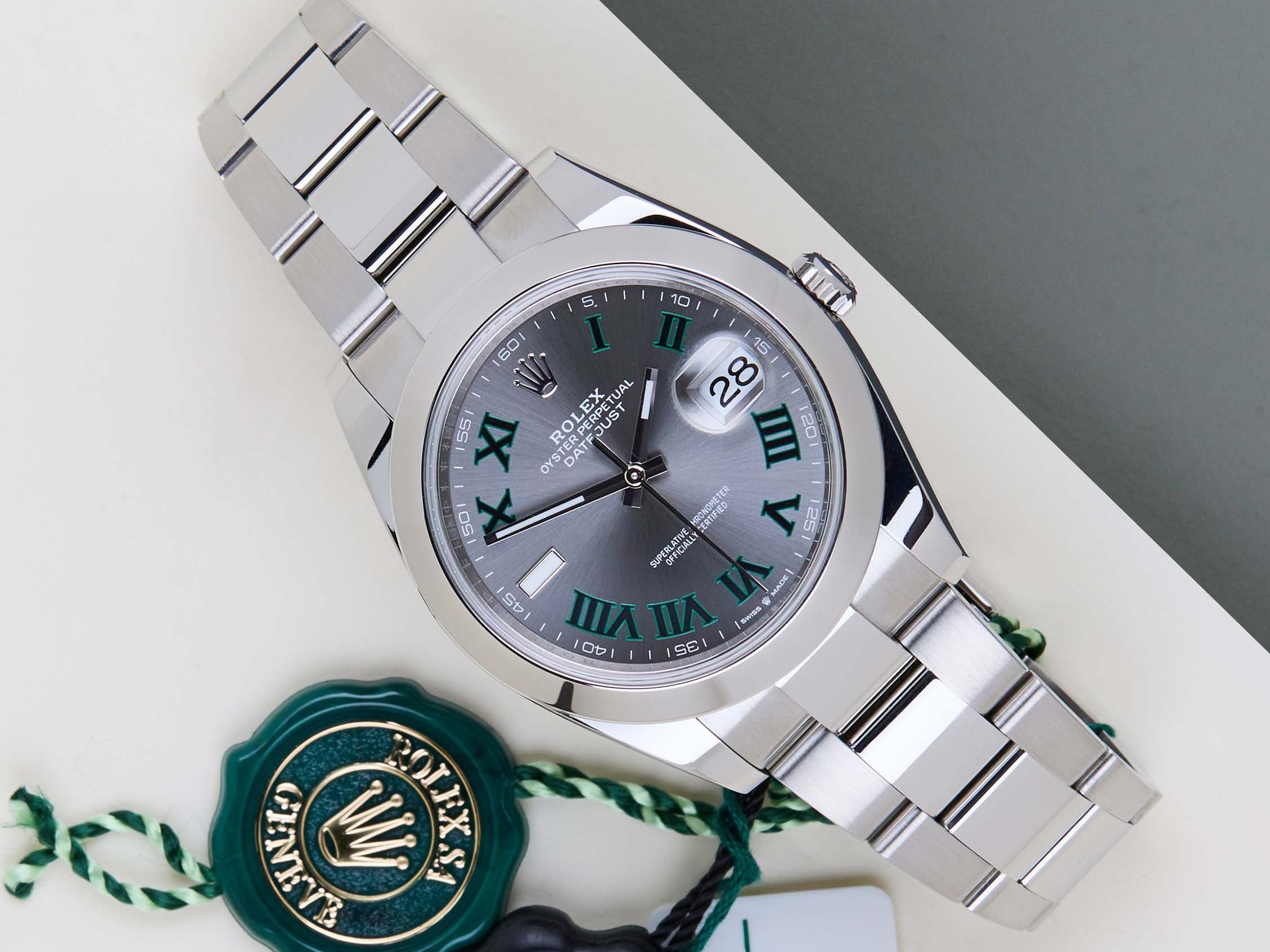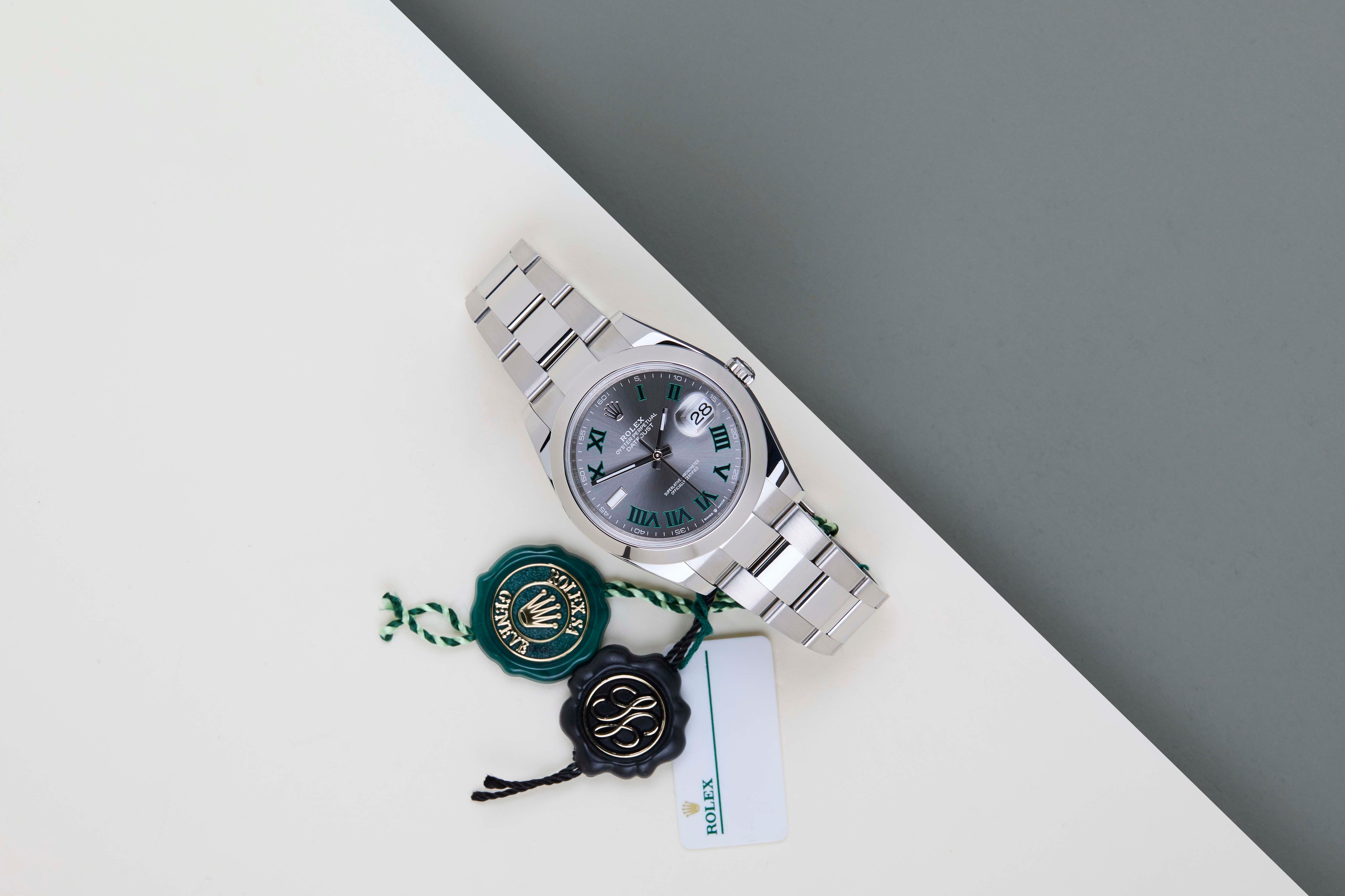 Full Set | Including Rolex White Tag | Including International Rolex Warranty Until August 2029Rolex introduced the original Datejust in 1945 to celebrate the company's 40th anniversary. Due to the various case sizes and materials, the Datejust has been ingrained in Rolex's history and remains incredibly popular for 75 years.This Rolex Datejust 41 'Wimbledon Dial - Oyster' was sold for the first time in August 2024.This Datejust is made of stainless steel and is fitted with an Oyster bracelet, which is equipped with the Easylink. This extension, allows the wearer to either extend or shorten the bracelet by 5 millimeters, improving the wearability and usability of the watch.This Rolex Datejust 41 is in Mint Condition and comes with the original Rolex Warranty Card and box. Furthermore, the watch still has International Rolex Warranty until August 2029.