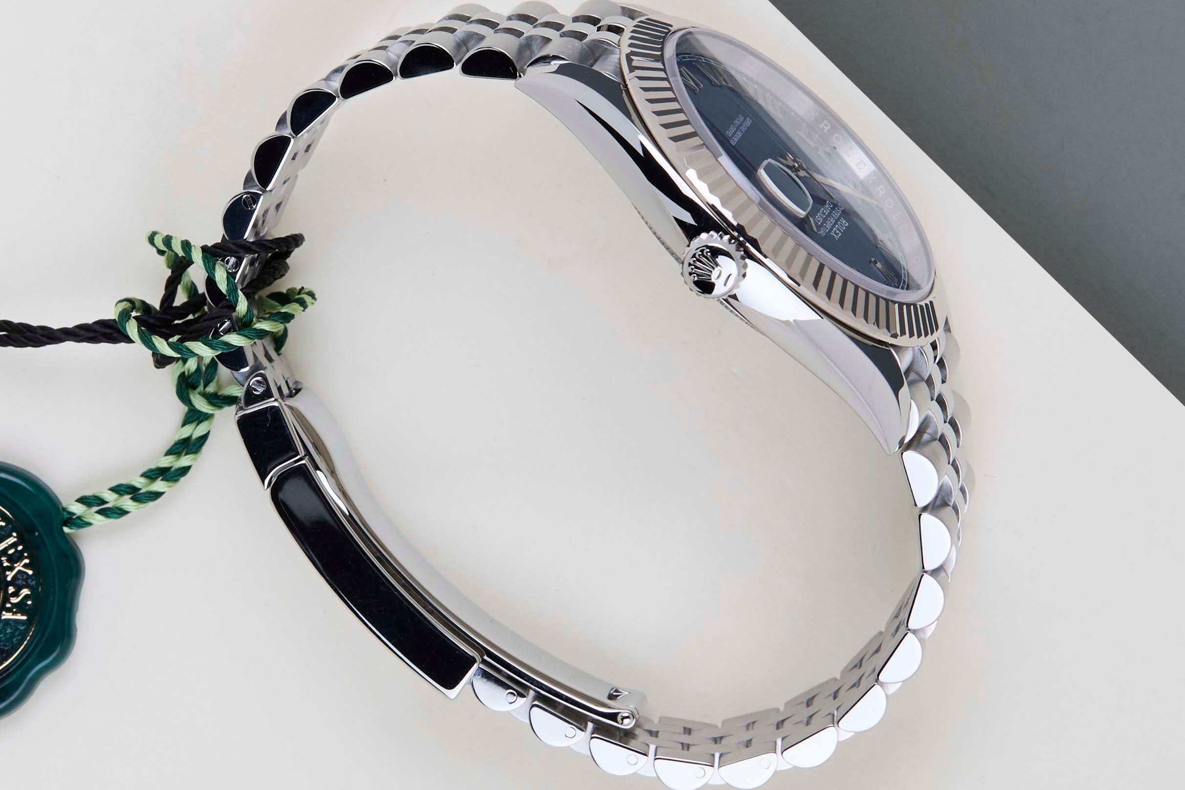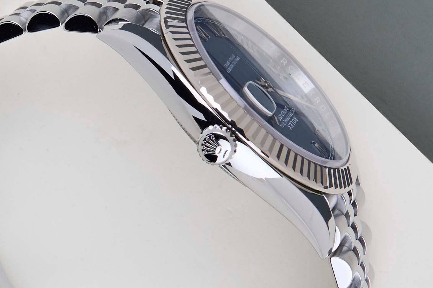Rolex introduced the original Datejust in 1945 to celebrate the company's 40th anniversary. Due to the various case sizes and materials, the Datejust has beeningrained in Rolex's history and remains incredibly popular for 75 years.This Rolex Datejust 41 'Blue Roman Dial - Jubilee' was sold for the first time in June 2020.This Datejust is made of a combination of 18k White Gold and stainless steel and is fitted with a Jubilee bracelet, which is equipped with the Easylink. This extension, allows the wearer to either extend or shorten the bracelet by 5 millimeters, improving the wearability and usability of the watch.This Rolex Datejust 41 is in Mint condition and comes with the original Rolex Warranty Card and box. Furthermore, the watch has been serviced by our watchmaker and therefore it comes with One Year of Steiner Warranty.