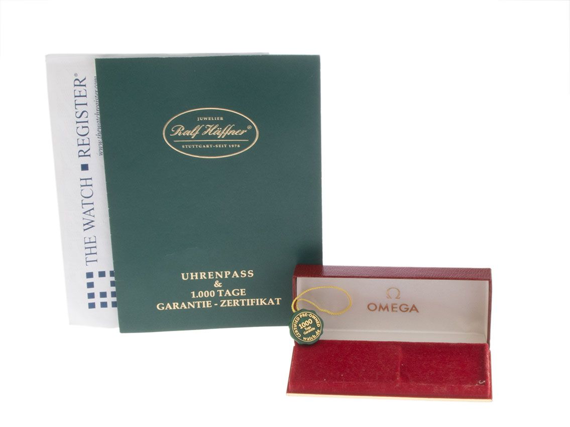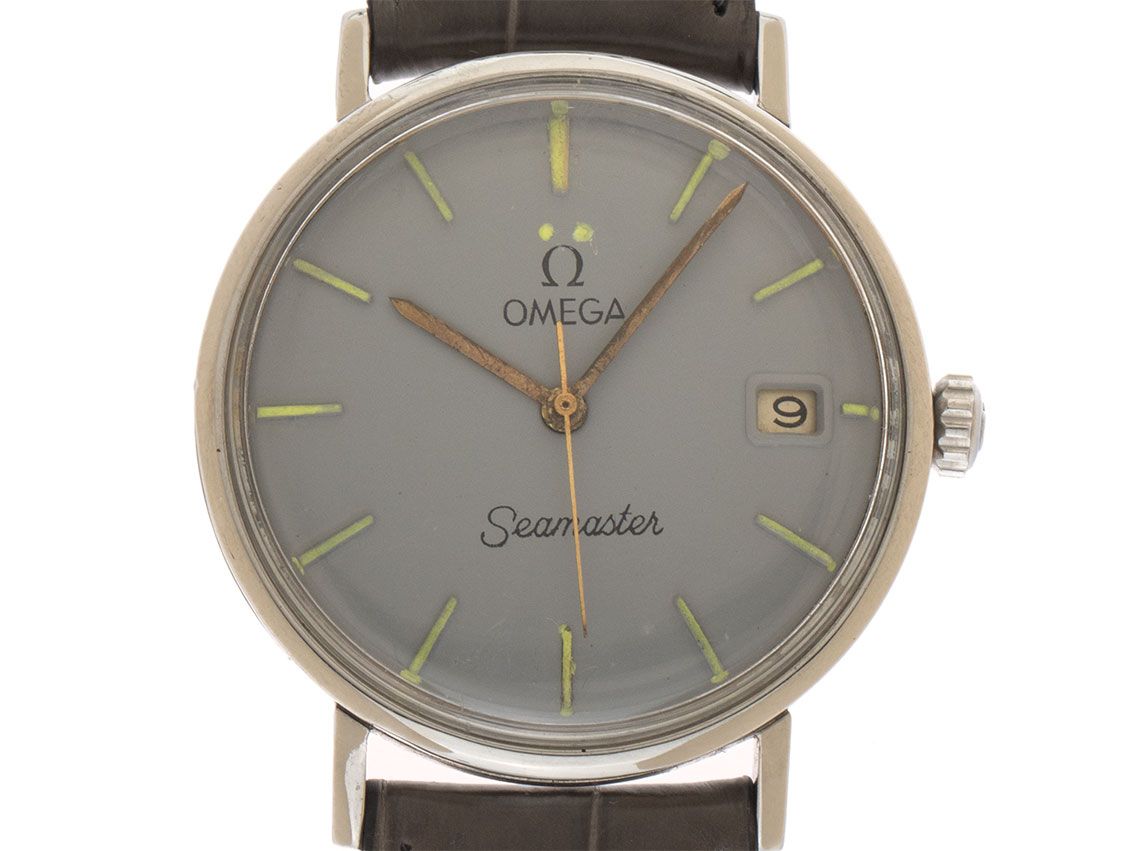 Omega Seamaster Stahl Handaufzug Armband Leder Gehäuse Edelstahl poliert und satiniert, Gehäusedurchmesser ohne Krone 34mm, Gehäusehöhe 9,2mm. Armband Leder grau mit Ziernaht, Anstoßbreite 18mm, Stiftschließe Edelstahl. Zifferblatt grau mit aufgesetzten Indexen und roségoldenen, patinierten Zeigern. Uhrwerk Handaufzug, Omega Manufakturkaliber 266 mit 17 Edelsteinen. Anzeige von Stunde, Minute und Sekunde über Zeiger aus der Mitte. Plexiglas gewölbt. Krone geriffelt mit Hersteller-Logo. Boden Edelstahl graviert. Gewicht der Uhr inklusive Armband 34g, Länge des Armbandes inklusive Gehäuse 140-185mm, siehe Foto Nummer 8. Referenznummer: 14740, Baujahr: 1959, ID: P238915300126HW-2800, Artikelnummer: 10000084523. Original Omega Box und Watchregister Auszug von April 2026, The Watch Register Zertifikat / ohne Eintrag (Internationale Datenbank für verlorene oder gestohlene Uhren). Superschnäppchen Original unpoliert, kann auf Wunsch kostenlos aufgearbeitet werden . Lieferzeit sofort. Inklusive certified pre owned Siegel / Uhrenpass mit einem Farbbild, der genauen Beschreibung sowie dem Wiederbeschaffungswert der Uhr über 2800,-€ und 1000 Tage Garantie ab Kaufdatum.