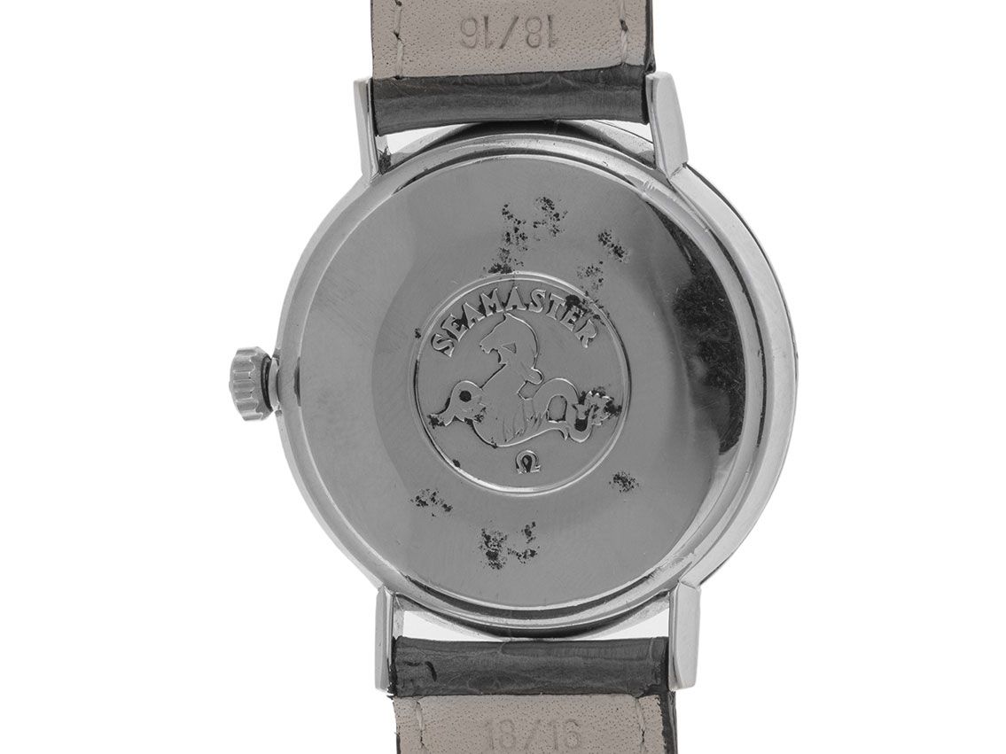 Omega Seamaster Acero Manual Correa de Cuero Caja de acero inoxidable pulido y satinado, diámetro de la caja sin corona 34mm, altura de la caja 9,2mm. Correa de cuero gris con costura decorativa, ancho de asas 18mm, hebilla de pasador de acero inoxidable. Esfera gris con índices aplicados y agujas en rosé dorado, patinadas. Movimiento manual, calibre de manufactura Omega 266 con 17 rubíes. Indicación de horas, minutos y segundos a través de agujas centrales. Cristal de plexiglás abombado. Corona estriada con logo del fabricante. Fondo de acero inoxidable grabado. Peso del reloj incluyendo la correa 34g, longitud de la correa incluyendo la caja 140-185mm, ver foto número 8. Número de referencia: 14740, año de fabricación: 1959, ID: P238915300126HW-2800, número de artículo: 10000084523. Caja original de Omega y extracto del registro de relojes de abril de 2026, certificado de The Watch Register / sin entrada (base de datos internacional para relojes perdidos o robados). Superoferta Original sin pulir, puede ser restaurado gratuitamente a petición. Tiempo de entrega inmediato. Incluye sello de certified pre owned / pasaporte del reloj con una imagen a color, la descripción exacta y el valor de reposición del reloj superior a 2800,-€ y 1000 días de garantía a partir de la fecha de compra.