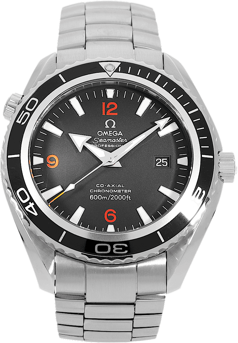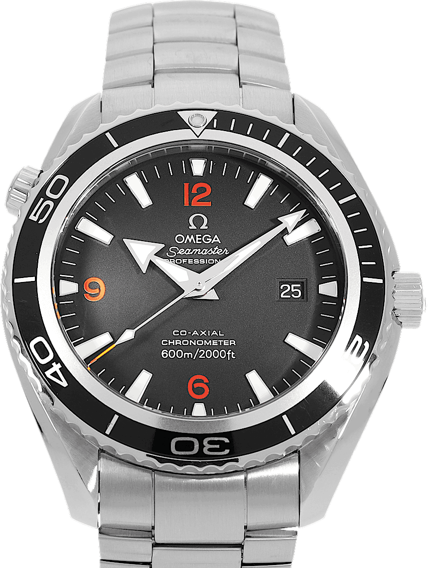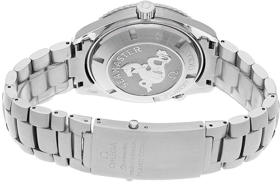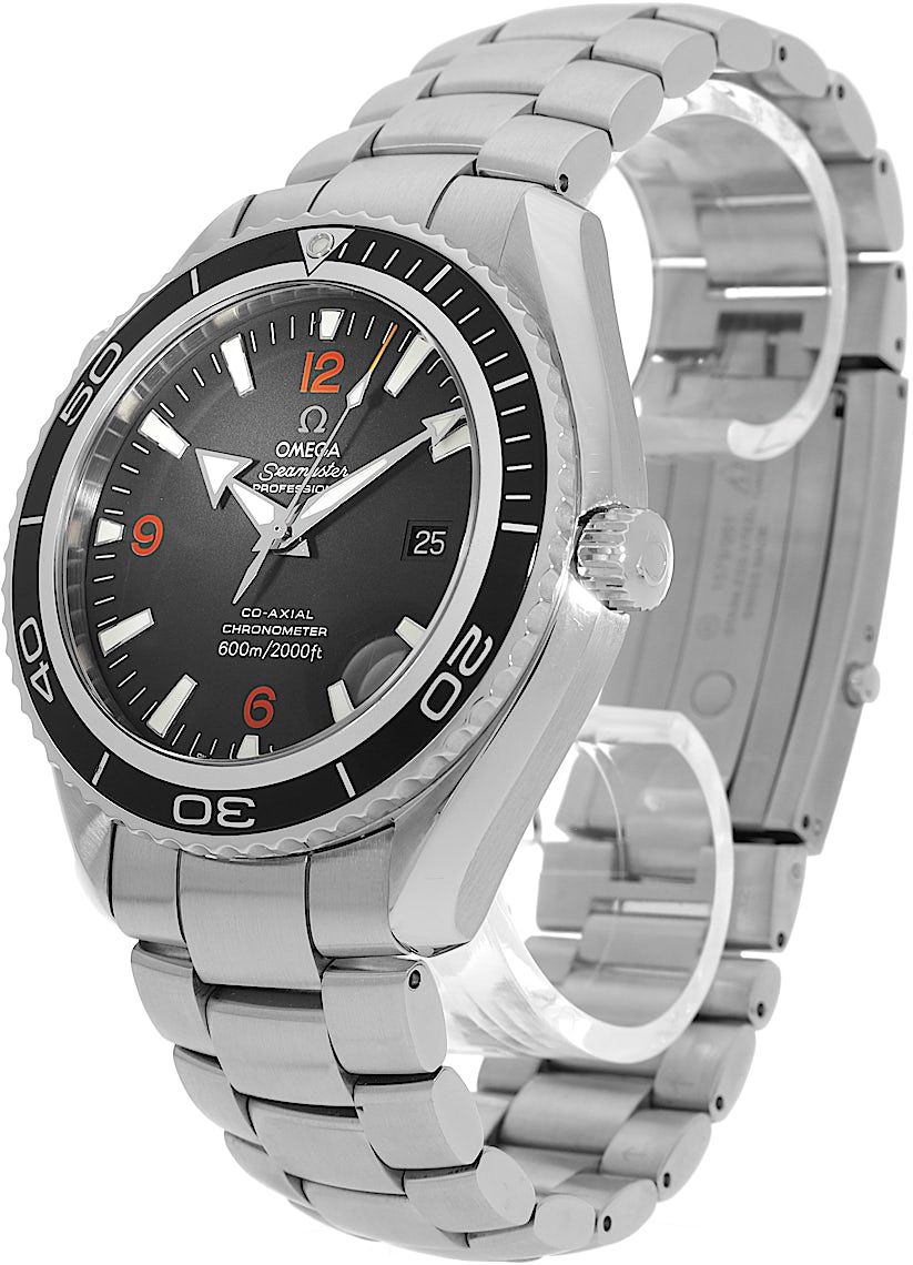 Omega Seamaster Planet Ocean Co-Axial, Referencia: 2208.50.00, Género: Hombre, Tamaño: 45mm, Color de la esfera: Negro, Material de la correa: Acero inoxidable, Movimiento: Automático, Año: 2007, Condición: Usado previamente con algunos signos de uso. El movimiento es impecable y la caja ha sido limpiada. Reloj probado para asegurar su funcionalidad completa. Una inspección por nuestros relojeros certificados garantiza su autenticidad., Documentos: Documentos originales, Certificado CHRONEXT