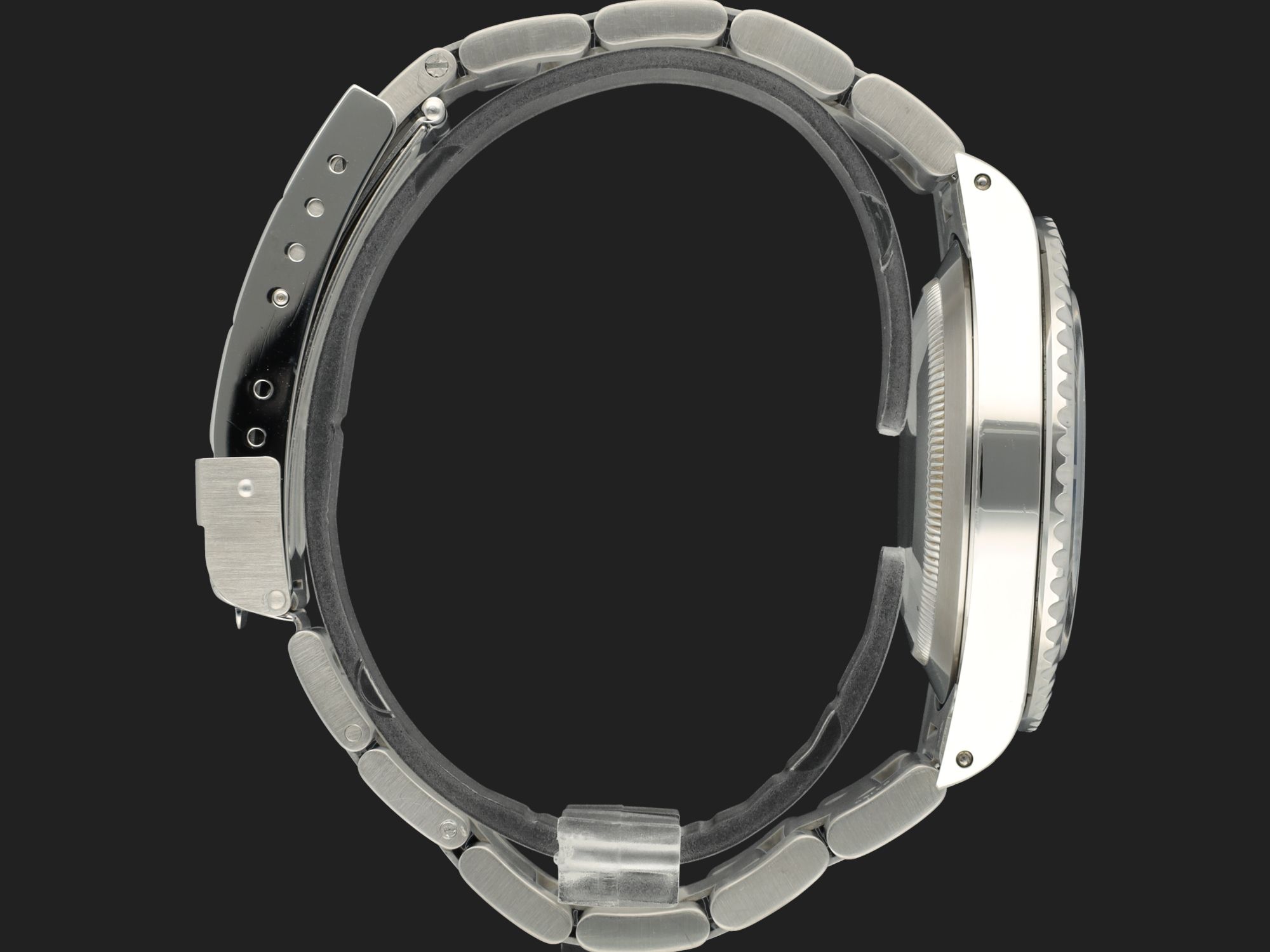 - Signos leves de uso como microarañazos o pequeños arañazos superficiales. La caja, el bisel y el brazalete conservan sus aristas definidas y su forma general. Puede haber sido pulido profesionalmente sin afectar a las líneas originales. Totalmente funcional mecánicamente.