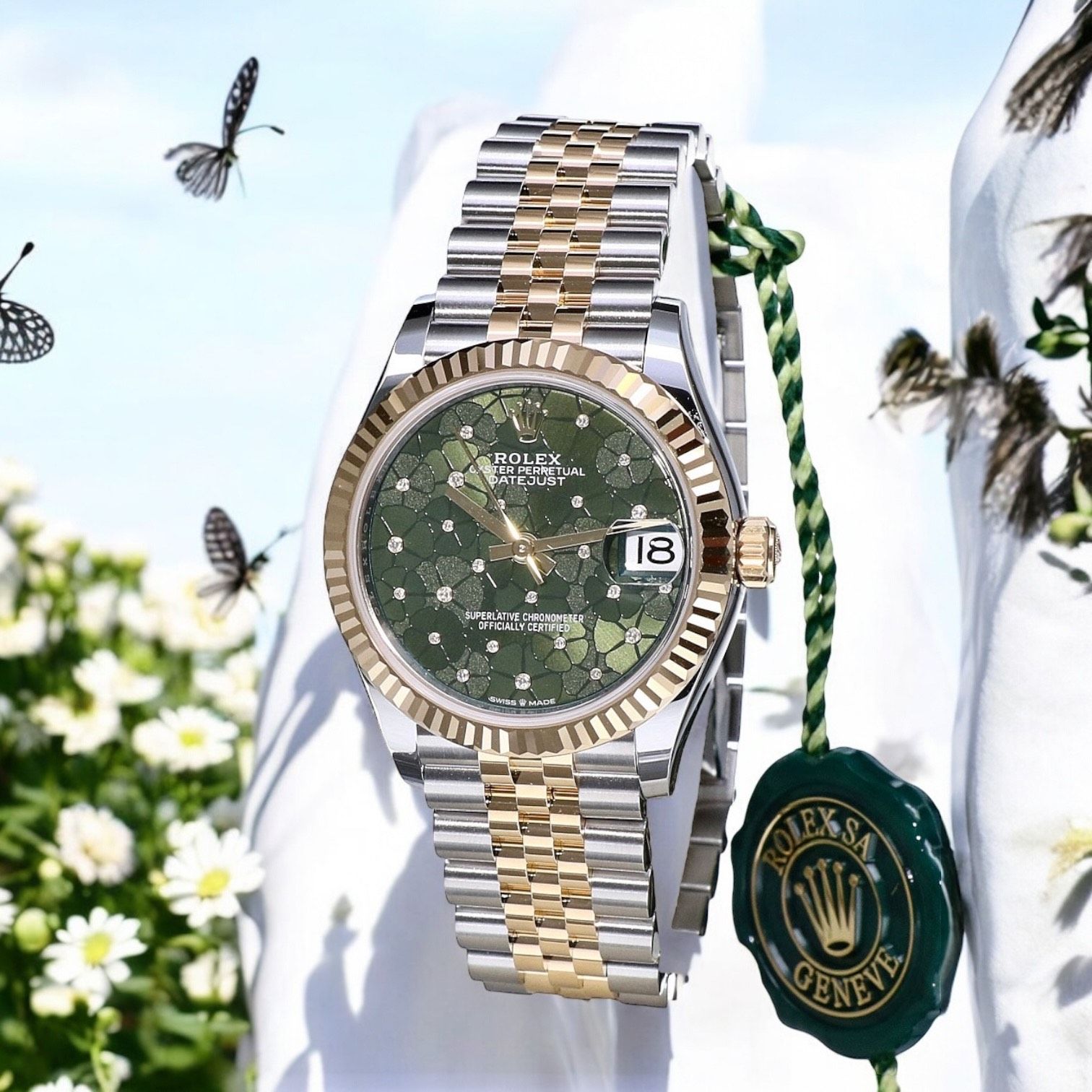 Rolex Datejust 31 Rolex Datejust Gold Steel Flower Motif Green Diamonds 31 mm // UNWORN 2022