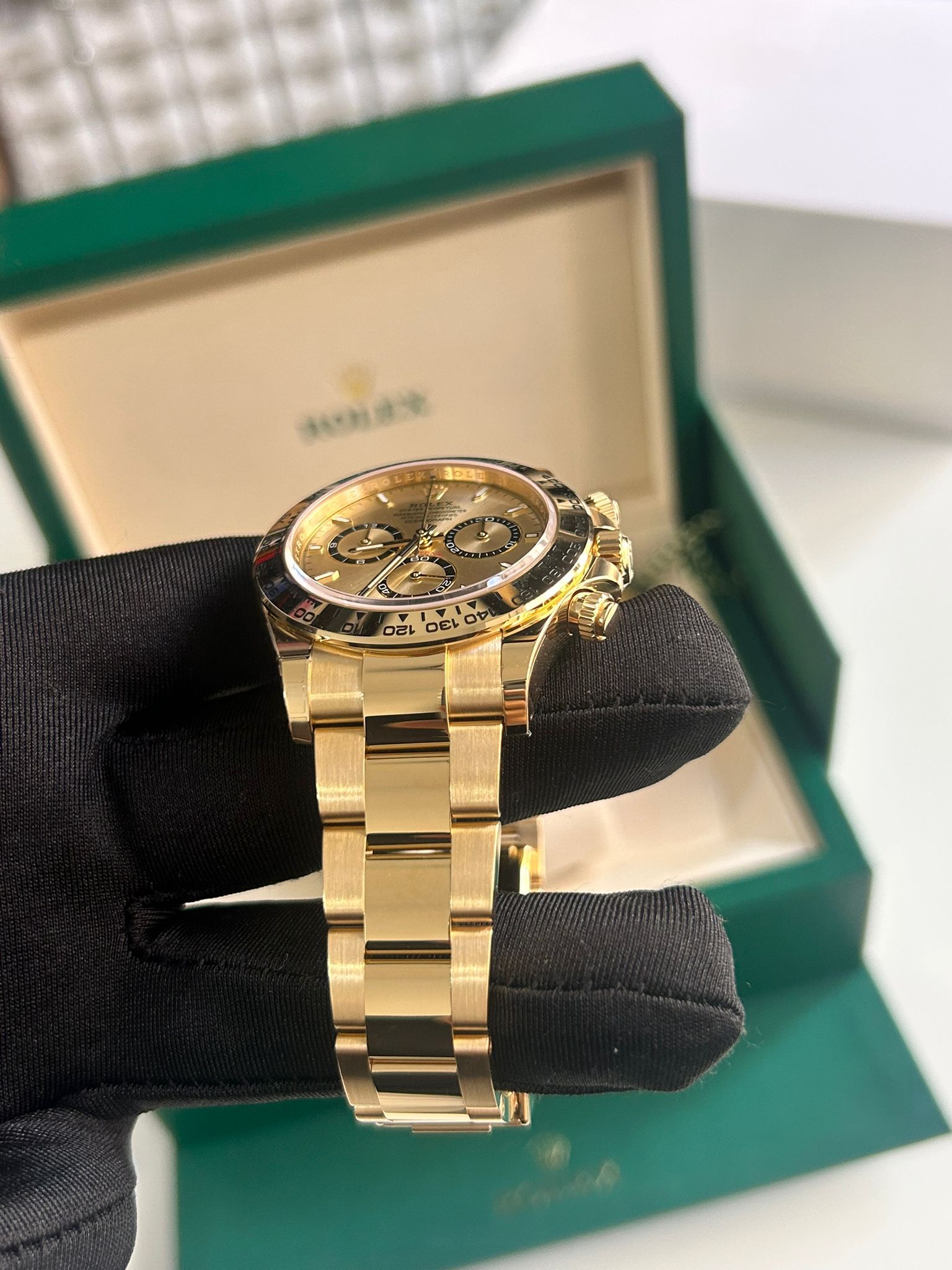 Todos nuestros relojes se entregan por defecto en estado nuevo y sin usar, como un conjunto completo que incluye reloj, caja, certificado/papeles y garantía, tal como se entrega en la boutique oficial, a menos que se indique lo contrario.