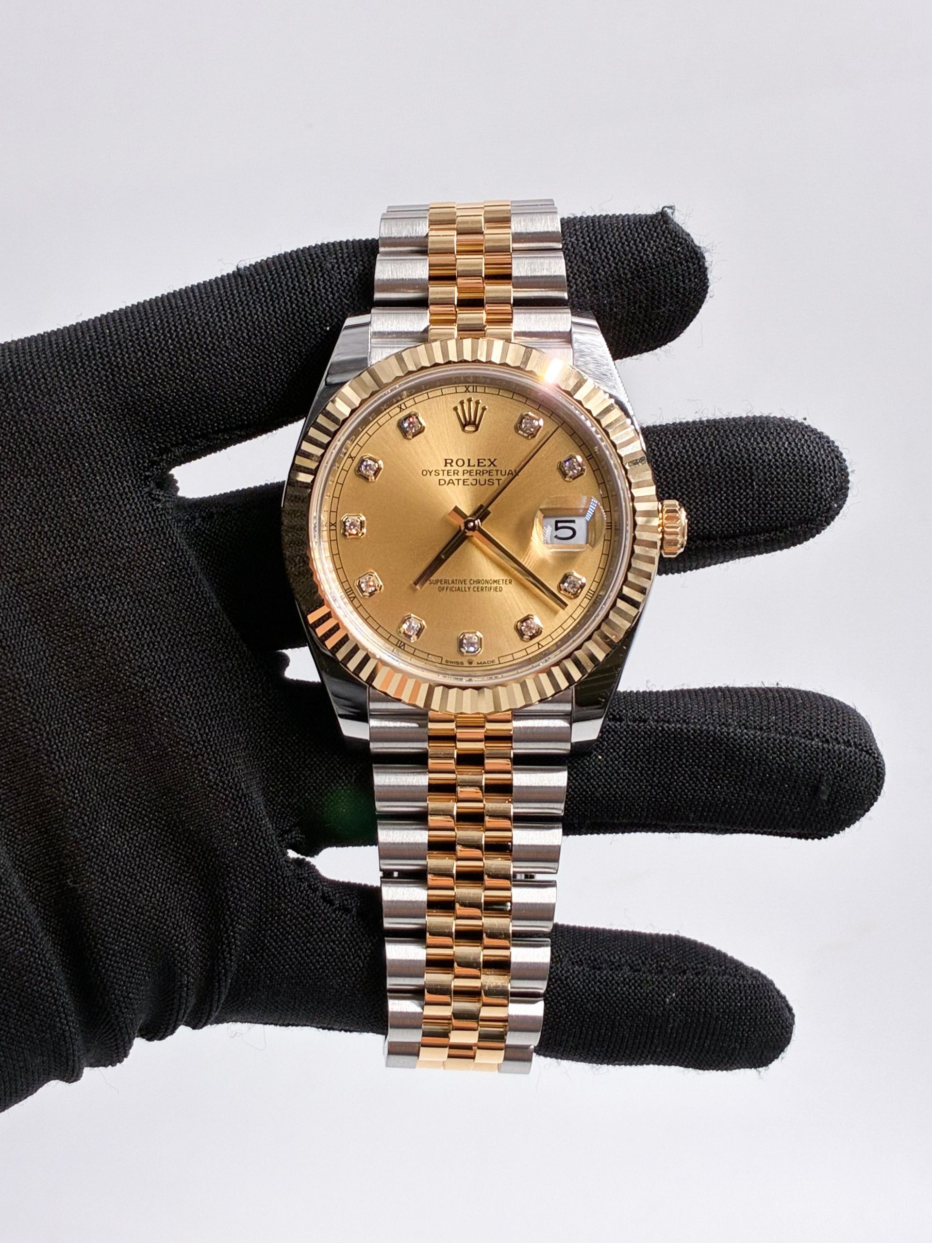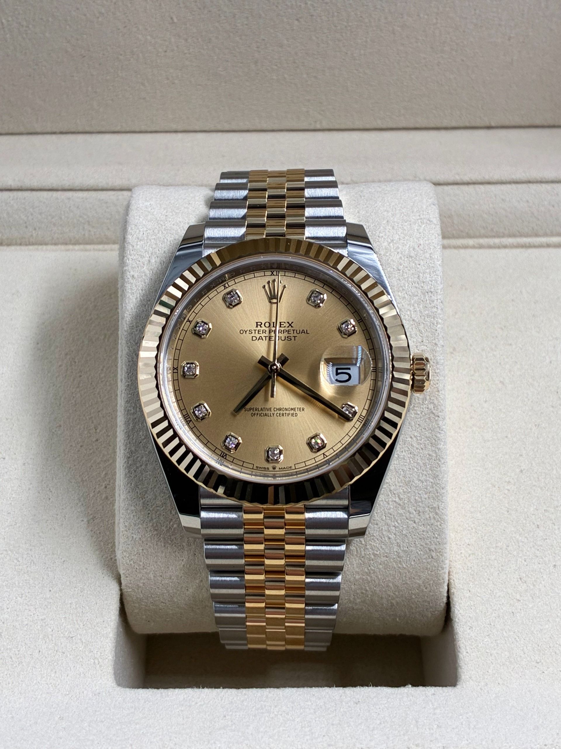 Rolex Datejust 41 Rolex Datejust 41 M126333-0012 - Champagne-colour set with diamonds dial, fluted bezel, jubilee bracelet