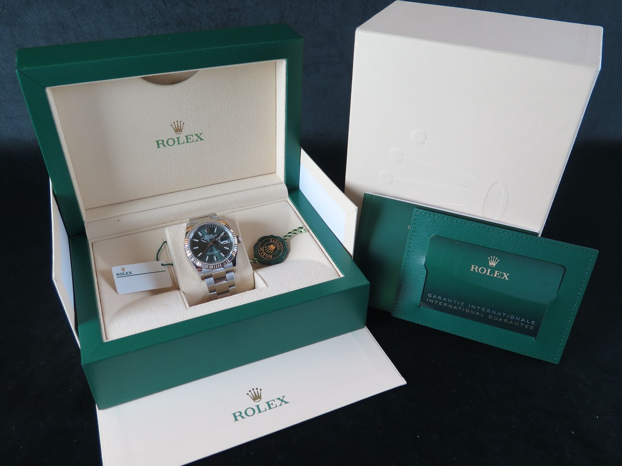 Dial colour is mint green.Originally sold by Rolex 12/2022.