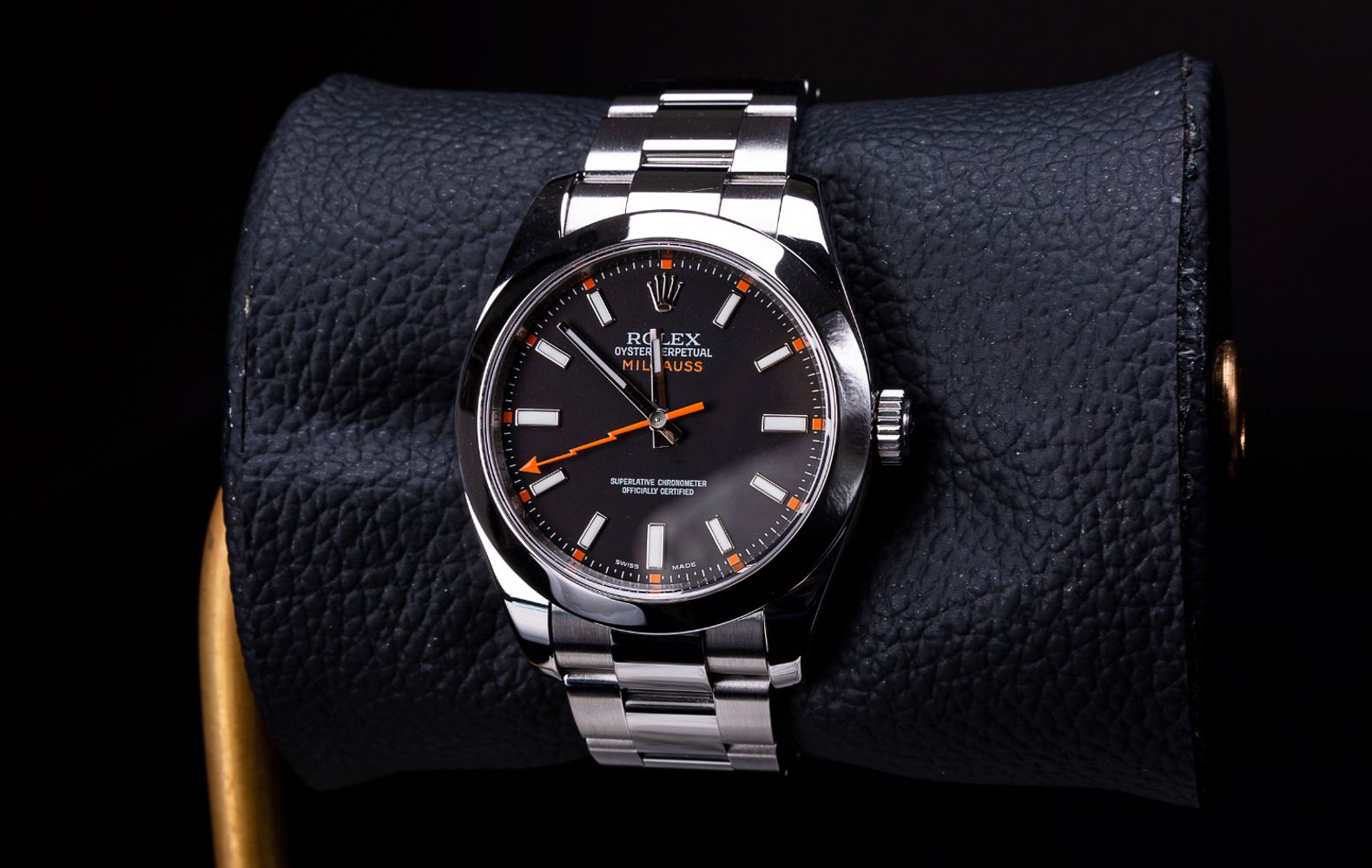 La Rolex Milgauss, notamment la référence 116400GV avec cadran noir ou bleu et glace verte (GV), n'est plus produite. Ce qui signifie que vous ne pourrez la trouver que sur le marché gris, neuve avec ses protections ou d'occasion. La 116400GV est dotée d'un boîtier Oyster de 40 mm et d'un bracelet à trois maillons en acier inoxydable et a été l'un des numéros de référence les plus longs de l'ère moderne, commençant en 2007 et s'arrêtant en 2023. Si vous êtes à la recherche d'une Rolex Milgauss, préparez-vous à payer un prix plus élevé, car ces modèles sont très recherchés par les collectionneurs.